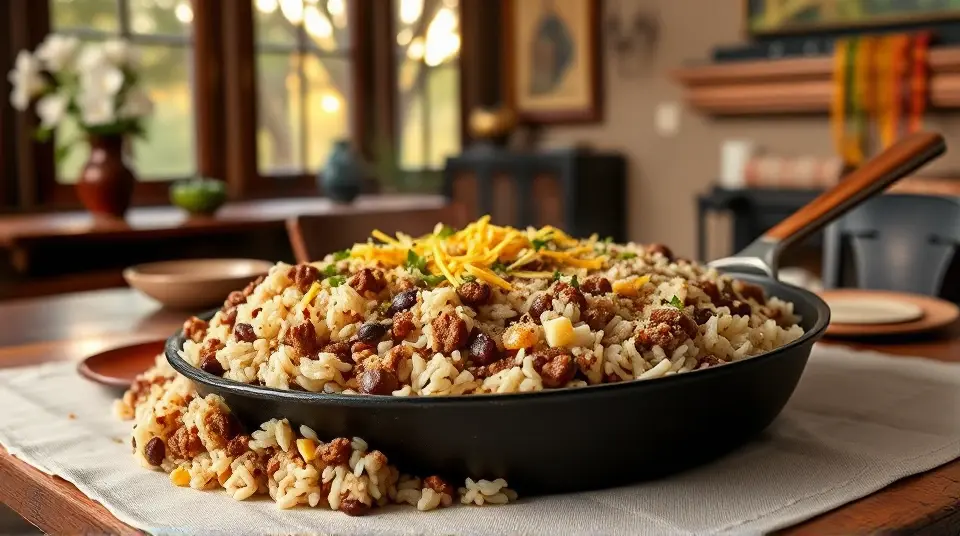 This hearty dish is a warm, comforting staple that’s perfect for a family dinner or a gathering with friends. Featuring the bold flavors of Creole seasoning, it combines protein and fiber-rich black-eyed peas with savory ground beef and aromatic vegetables. Plus, it’s all cooked together with fluffy rice, making clean-up a breeze. This recipe is sure to impress your guests and keep your family satisfied!