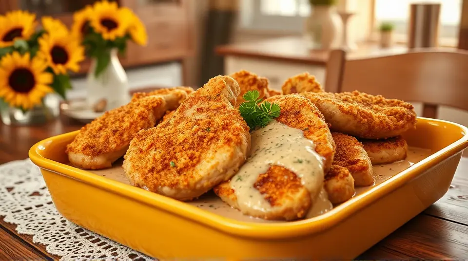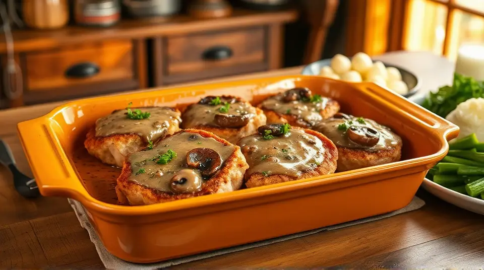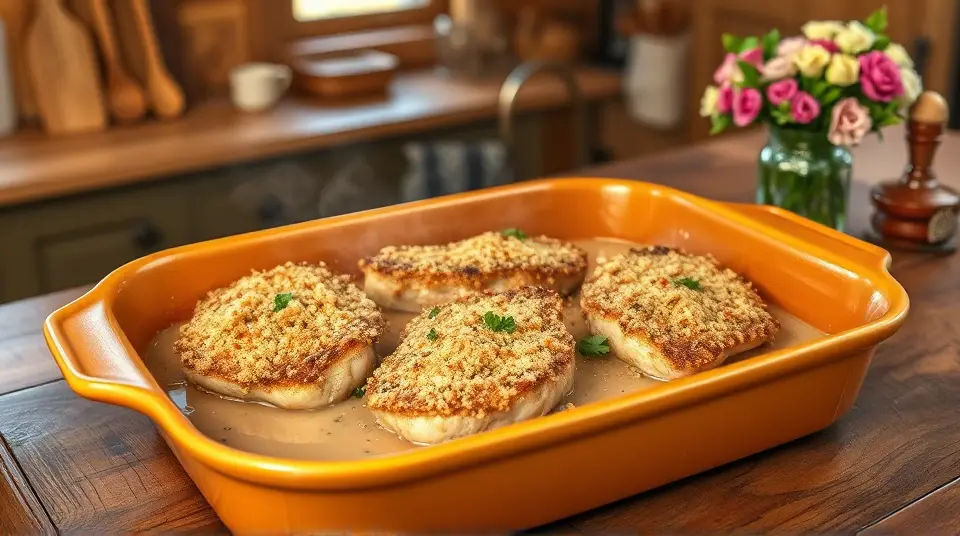 These delightful baked pork chops are a family favorite—crispy on the outside and tender on the inside! The combination of seasoned breadcrumbs and a creamy mushroom sauce creates a deliciously comforting dish that pairs perfectly with your favorite sides like mashed potatoes or steamed veggies. 🌿🥔