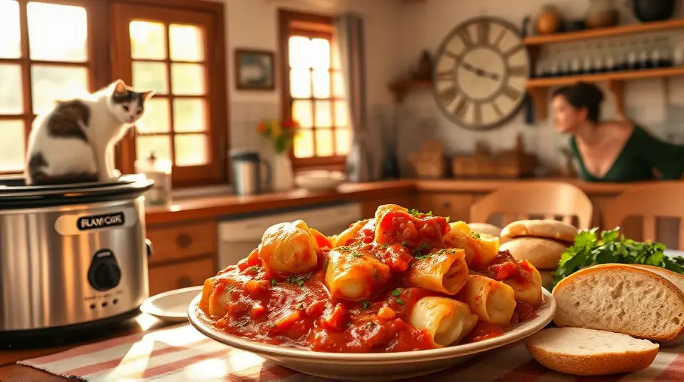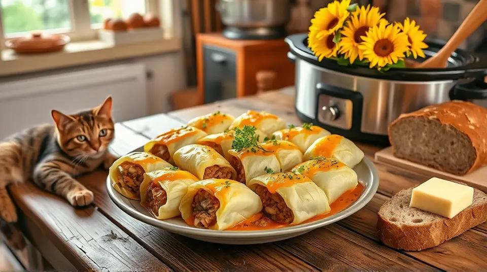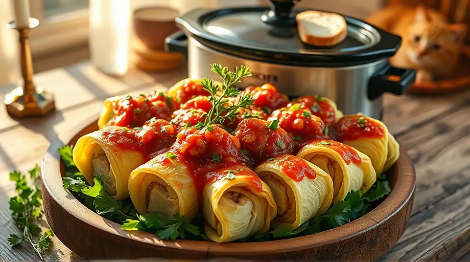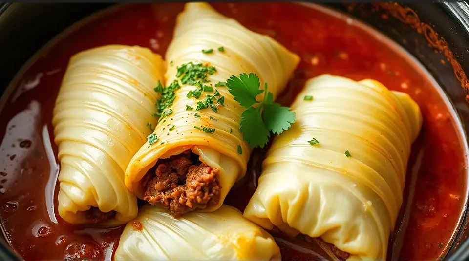# Comforting Cabbage Rolls πΏπ₯¬ These hearty cabbage rolls are a classic dish that brings warmth and comfort to any meal. Filled with a savory meat and rice mixture and topped with a tangy sauce, they make for a satisfying dinner. Plus, they can easily be prepared in a slow cooker, allowing you to enjoy a home-cooked meal with minimal fuss. Perfect for cozy family gatherings or as leftovers for lunch the next day! π½οΈ ## Ingredients ### For the filling - 12 cabbage leaves - 1 cup cooked white rice - 1 egg, beaten - 1/4 cup milk - 1/4 cup minced onion - 1 pound extra-lean ground beef - 1 1/4 teaspoons salt - 1 1/4 teaspoons ground black pepper ### For the sauce - 1 (8 ounce) can tomato sauce - 1 tablespoon brown sugar - 1 tablespoon lemon juice - 1 teaspoon Worcestershire sauce ## Instructions 1. Bring a large pot of water to a boil. Blanch the cabbage leaves for 2 minutes, then drain and set aside. 2. In a large bowl, combine the cooked rice, beaten egg, milk, minced onion, ground beef, salt, and black pepper. Mix until well combined. 3. Take about 1/4 cup of the meat mixture and place it in the center of each cabbage leaf. Roll up tightly, tucking in the ends as you go. 4. Place the cabbage rolls in a slow cooker, seam side down. 5. In a separate bowl, whisk together the tomato sauce, brown sugar, lemon juice, and Worcestershire sauce. Pour this over the cabbage rolls in the slow cooker. 6. Cover and cook on Low for 8 to 9 hours, allowing the flavors to meld beautifully. > π₯ Feel free to add a pinch of your favorite herbs, such as thyme or dill, to the meat mixture for added flavor! ## Tips for Success - **Choosing your cabbage**: Look for a firm, heavy head of cabbage. Savoy cabbage works wonderfully too, as it has a milder flavor and more tender leaves. - **Make-ahead option**: You can prepare the cabbage rolls a day in advance and store them in the fridge until you're ready to cook, making dinner time a breeze! - **Freezing leftovers**: These rolls freeze well! Portion them out and store in an airtight container for a quick meal later. ## Variations - **Vegetarian option**: Substitute the ground beef with cooked lentils or a meat substitute mixed with extra vegetables like chopped mushrooms or bell peppers for a plant-based version. π½οΈ - **Spicy twist**: Add a dash of red pepper flakes to the sauce for a bit of heat! - **Herbed rice**: Mix in some fresh chopped herbs like parsley or cilantro into the rice filling for a flavor upgrade. Enjoy every delicious bite of these comforting cabbage rolls with your loved ones! πImages