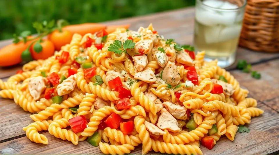This vibrant and zesty pasta salad is a crowd-pleaser that's perfect for picnics, potlucks, or a fun weeknight dinner! With the bold flavors of buffalo sauce and creamy dressing, this dish is sure to be a hit. The combination of tender chicken, crunchy bell peppers, and mellow red onion creates a delightful contrast in texture. Pair it with a cold beverage for a refreshing meal! 🥤