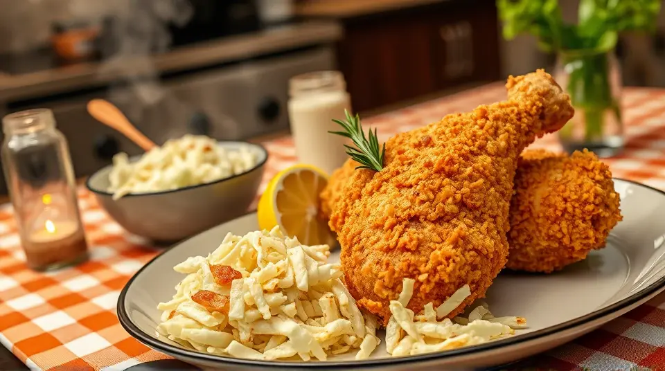This oven-fried chicken recipe is a healthier twist on traditional fried chicken. The combination of sour cream and garlic gives the chicken a delicious flavor, while the cornflake coating ensures a satisfying crunch. Perfect for family dinners, picnics, or any gathering, this dish is sure to impress!