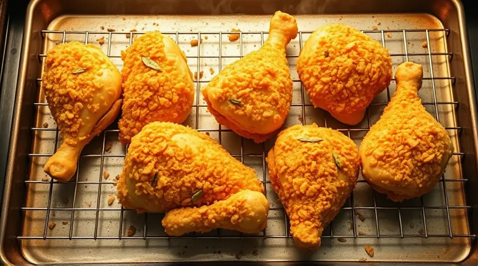 🔥 Tip: If you want an extra crunchy coating, try double-dipping the chicken: coat it in the sour cream mixture, then again in the cornflake mixture before placing it on the rack!