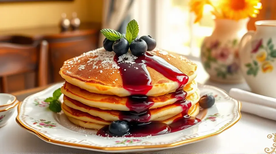 Heavenly Dessert Pancakes with Blueberry Sauce 🥞💙