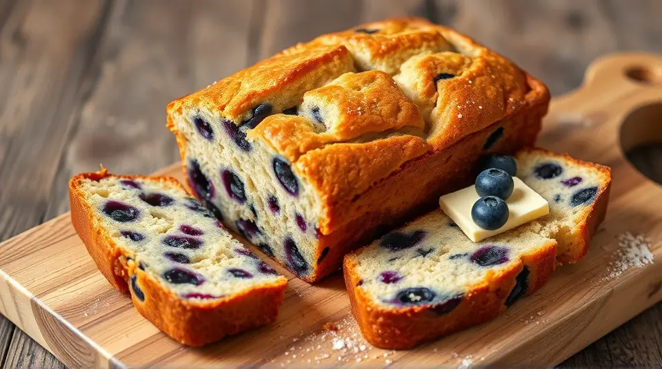 # Blueberry Banana Bread 🍌🫐 This delightful Blueberry Banana Bread is the perfect solution for overripe bananas and a craving for something sweet! With the warm, comforting flavors of banana and the burst of fresh blueberries, this bread is ideal for breakfast, snacks, or even dessert. Dress it up with a pat of butter or enjoy it plain for a simple yet satisfying treat. This recipe is not only tasty but also incredibly easy to make, ensuring you’ll have a delicious loaf in no time. ## Ingredients ### Dry Ingredients - 2 cups all-purpose flour - 1 teaspoon baking soda - 1/2 teaspoon salt ### Wet Ingredients - 1/2 cup butter, softened - 1 cup white sugar - 2 eggs - 2 teaspoons vanilla extract - 2 ripe bananas, mashed ### Add-ins - 1 cup fresh blueberries ## Instructions 1. **Preheat Your Oven**: Start by preheating your oven to 350°F (175°C). Grease three small loaf pans to prevent sticking. 2. **Mix Dry Ingredients**: In a medium bowl, whisk together the flour, baking soda, and salt. Set aside. 3. **Cream Butter and Sugar**: In a large bowl, beat the softened butter and sugar until light and fluffy. The mixture should become noticeably lighter in color. > 🎂 Pro Tip: Make sure your butter is at room temperature for easier mixing. This helps the ingredients blend smoothly for a fluffy texture! 4. **Incorporate Eggs and Bananas**: Add one egg to the butter mixture and mix until well combined, then add the second egg along with the vanilla extract. Beating the mixture thoroughly helps to create a light texture. Next, fold in the mashed bananas. 5. **Combine Wet and Dry Mixtures**: Gradually add the dry ingredients to the wet mixture, stirring gently until just combined. Avoid overmixing to keep your bread tender. 6. **Add Blueberries**: Gently fold in the fresh blueberries, ensuring they’re evenly distributed throughout the batter. 7. **Bake**: Pour the batter into the prepared loaf pans and bake in the preheated oven for 30-35 minutes, or until a toothpick inserted into the center comes out clean. 8. **Cool Down**: Allow the bread to cool in the pans for about 10 minutes before transferring it to a wire rack to cool completely. ## Tips for Success - **Bananas**: The riper the bananas, the sweeter your bread will be! - **Storage**: This bread can be stored at room temperature or in the refrigerator for up to a week. For longer storage, slice and freeze. - **Mix-Ins**: Feel free to experiment with add-ins like walnuts, chocolate chips, or even a sprinkle of cinnamon for extra warmth. ## Variations - **Gluten-Free**: Substitute the all-purpose flour with a 1:1 gluten-free baking blend for a gluten-free version. - **Vegan**: Replace the butter with a vegan alternative and use flax eggs (1 tablespoon flaxseed meal plus 3 tablespoons water for each egg) for an egg-free version. - **Zest it Up**: Add some lemon or orange zest to the batter for a citrusy twist that complements the blueberries beautifully. With its lovely balance of flavors and ease of preparation, this Blueberry Banana Bread is sure to become a favorite in your home! Enjoy every slice! 🍞✨Images