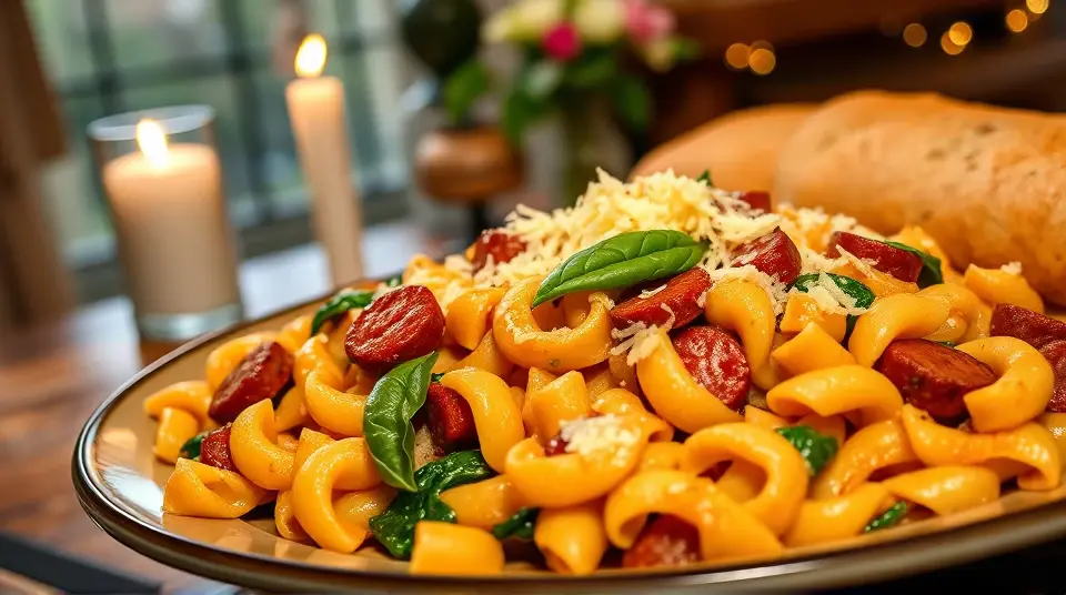 This delightful dish combines tender pasta with smoky sausage, fresh spinach, and a creamy cheese sauce. It's hearty and satisfying, making it perfect for a family dinner or a potluck gathering. The colorful ingredients not only make it visually appealing but also pack in tons of flavor and nutrition!