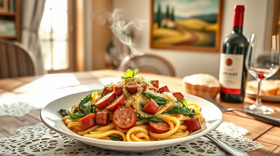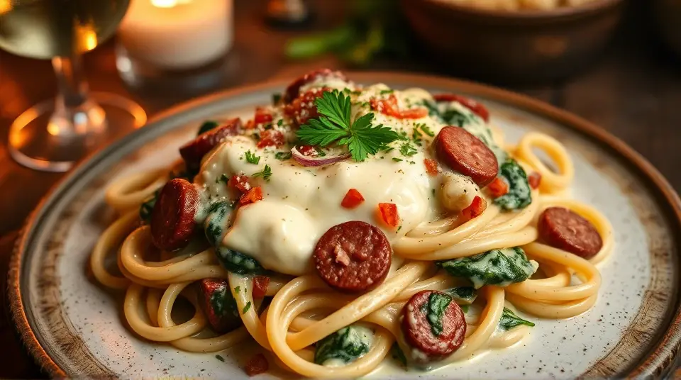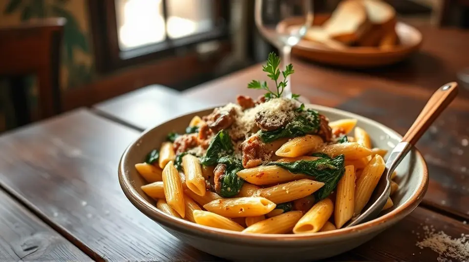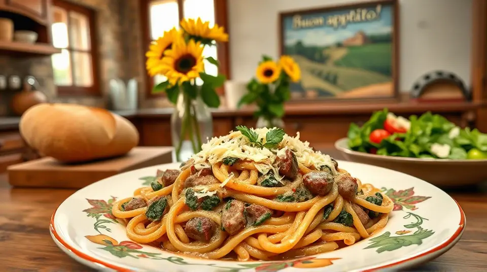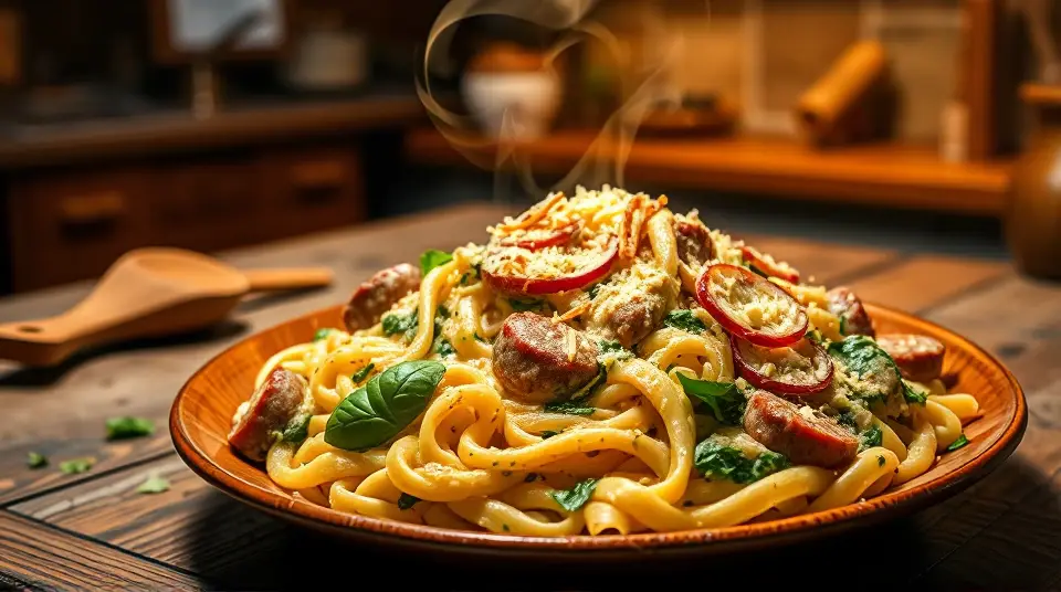 Creamy Spinach & Sausage Pasta 🍝🌿llm