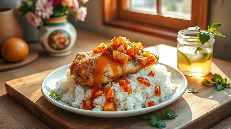 This vibrant dish combines the heat of taco seasoning with the sweetness of peach preserves, making it a delightful meal perfect for busy weeknights or family gatherings. The juicy chicken and flavorful salsa come together beautifully over a bed of rice, creating a satisfying and delicious experience. Consider serving it with a side of steamed vegetables or a fresh salad for a well-rounded meal! 🥗✨