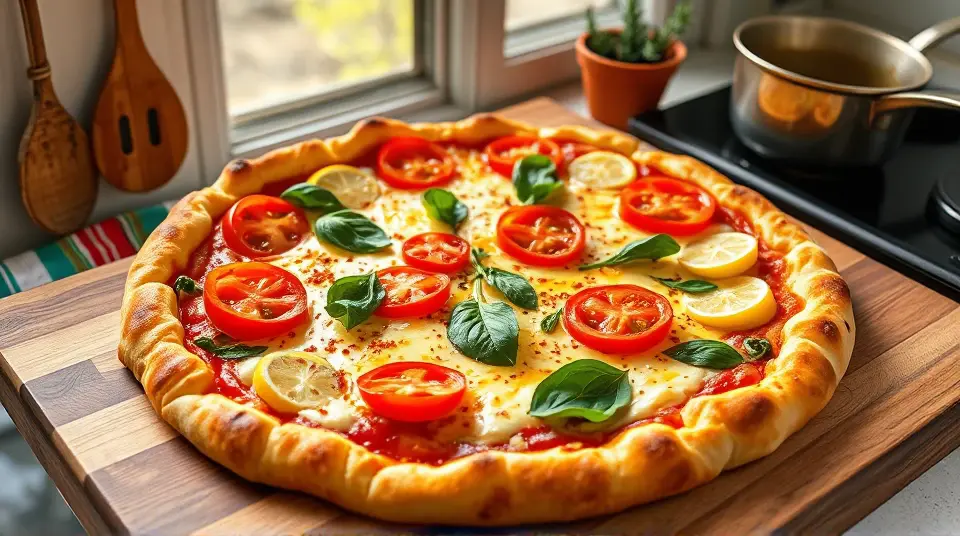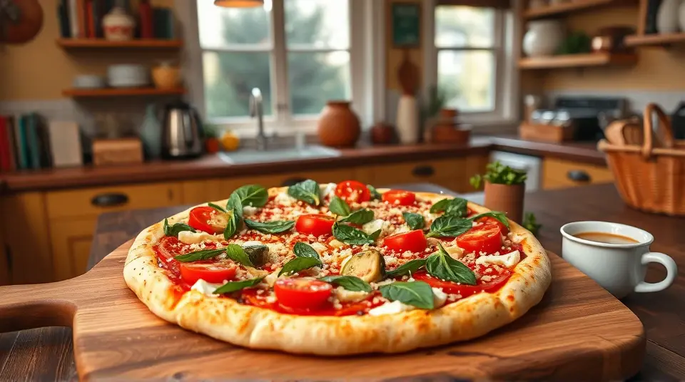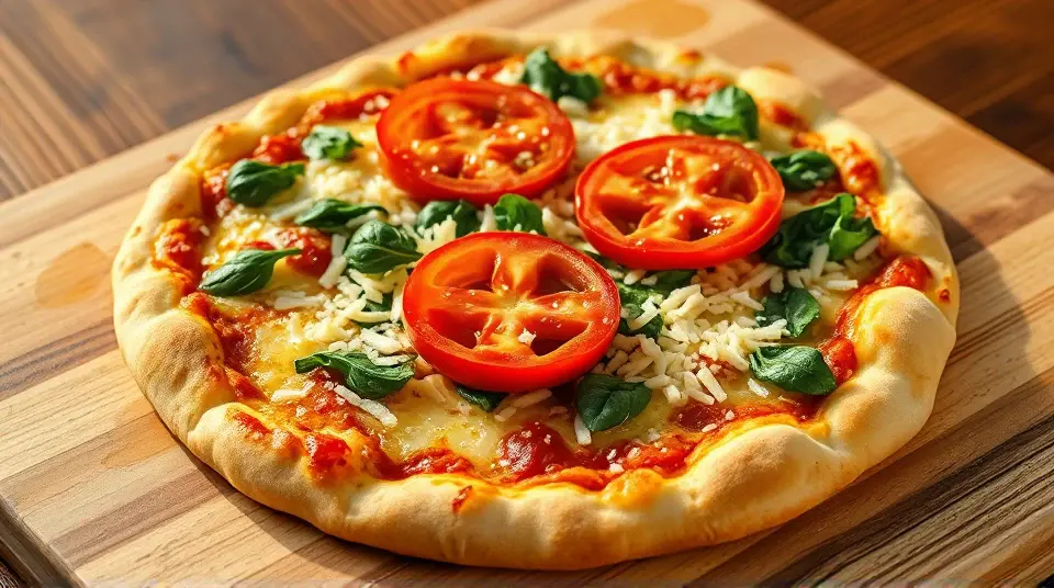 # Colorful Garden Pizza 🍕🌿 This delightful pizza is like a canvas of fresh flavors and vibrant ingredients! It's perfect for gatherings, or a fun family dinner. The creamy ricotta and savory spinach create a tasty base, while the juicy tomatoes add a refreshing touch. Customize it to your taste and impress your guests with this colorful dish! ## Ingredients ### For the pizza base - 1 package (14 ounces) pizza crust dough - 1 teaspoon olive oil ### For the filling - 4 ounces ricotta cheese - 1/4 cup grated Parmesan cheese - 7 ounces frozen chopped spinach, thawed and drained - 1 can (14 ounces) artichoke hearts, drained and chopped (optional) - 2 cloves garlic, crushed - Salt and pepper to taste - 1 package (8 ounces) shredded Italian 6-cheese blend - 2 tomatoes, thinly sliced ## Instructions 1. Preheat your oven to 375°F (190°C). Lightly grease a baking sheet or pizza stone. 2. Roll out or stretch the pizza dough on the prepared baking sheet, then rub the surface lightly with olive oil. > 🌟 A crispy crust is all about the oil! It helps achieve a golden-brown finish that's delicious! 3. In a bowl, mix together the ricotta cheese, Parmesan cheese, spinach, artichoke hearts (if using), garlic, salt, and pepper until well combined. 4. Spread the cheese mixture evenly over the dough, creating a creamy layer. 5. Sprinkle the shredded Italian cheese on top, then arrange the sliced tomatoes evenly for that beautiful pop of color. 6. Bake in the preheated oven for about 20 minutes, or until the crust is lightly browned and the cheese is melted and bubbling. > 🍽️ Allowing the pizza to cool for a few minutes before slicing will help the cheese set, making for cleaner slices! ## Variations - **Gluten-free**: Use a gluten-free pizza crust for a delicious alternative that everyone can enjoy! 🍞✨ - **Add more veggies**: Bell peppers, red onions, or thinly sliced zucchini can be a great addition for extra crunch and flavor. - **Spicy kick**: Add a sprinkle of red pepper flakes on top before baking for a hint of heat! 🌶️🔥 - **Herb lovers**: Basil or oregano makes for a delightful finish! Toss some fresh herbs on top right before serving for an aromatic touch. Enjoy your homemade garden pizza with a side salad or some garlic bread for a complete meal! 🍽️❤️Images