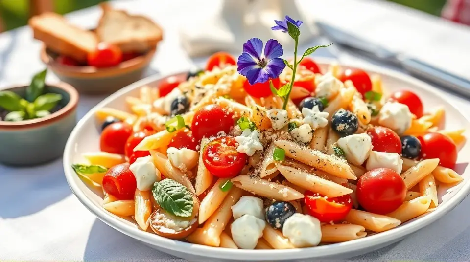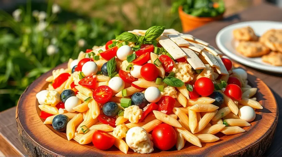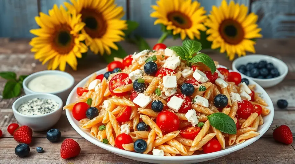 # Patriotic Pasta Salad 🇺🇸🍝 Celebrate any gathering or holiday with this vibrant and delicious Patriotic Pasta Salad! It's not only visually appealing with its red, white, and blue colors, but it's also a tasty combination of flavors and textures. Perfect for barbecues, picnics, or festive events, this dish can be served chilled or at room temperature, making it versatile for any occasion. Pair it with grilled meats or serve it as a standalone dish for a light meal! ## Ingredients ### For the dressing - 1/4 cup mayonnaise - 1/4 cup sour cream - 1/4 cup crumbled blue cheese - 1 1/2 teaspoons milk - 1/2 teaspoon salt - 1/2 teaspoon white vinegar - 1/4 teaspoon garlic powder - 1/4 teaspoon pepper - 1/2 teaspoon honey mustard - 1/8 teaspoon cayenne pepper ### For the salad - 2 1/2 cups uncooked penne or medium tube pasta - 1 garlic clove, minced - 3/4 teaspoon minced fresh basil - 2 tablespoons olive oil - 1 1/2 cups fresh cauliflower florets - 1 cup cherry tomatoes, halved - 3 green onions, chopped - 1/4 cup chopped sweet red pepper - 4 ounces mozzarella cheese, cut into 1-inch strips - 2 tablespoons grated Parmesan cheese ## Instructions 1. **Make the dressing**: In a small bowl, combine all the dressing ingredients. Mix well and set aside to let the flavors meld. 2. **Cook the pasta**: In a large pot, bring water to a boil and cook the pasta according to package directions. Once done, rinse under cold water and drain thoroughly. 3. **Sauté aromatics**: In a large skillet, heat olive oil over medium heat. Add the minced garlic and basil, sautéing until the garlic is tender and fragrant. > ⚠️ Keep an eye on the garlic to prevent it from burning! Burnt garlic can turn bitter, affecting the taste of your dish. 4. **Combine ingredients**: In a large mixing bowl, combine the cooked pasta, sautéed garlic and basil, cauliflower, cherry tomatoes, green onions, sweet red pepper, mozzarella, and the prepared dressing. Toss everything together until well coated. 5. **Chill**: Cover the pasta salad and refrigerate for at least 30 minutes before serving to allow the flavors to blend. ## Variations - **Add more veggies**: Feel free to get creative and toss in any of your favorite seasonal vegetables such as zucchini or bell peppers for extra crunch! - **Protein boost**: Add grilled chicken or chickpeas for a heartier salad, turning it into a complete meal. 🍗🍽️ - **Vegan option**: Substitute the mayonnaise and sour cream with plant-based alternatives, and use a cashew cheese instead of blue cheese for a creamy, dairy-free dressing. - **Make it spicy**: If you love heat, increase the cayenne pepper or add diced jalapeños for an extra kick! 🌶️ With its colorful presentation and a delicious mix of flavors, this Patriotic Pasta Salad is sure to be a crowd-pleaser wherever you go! 🎉Images