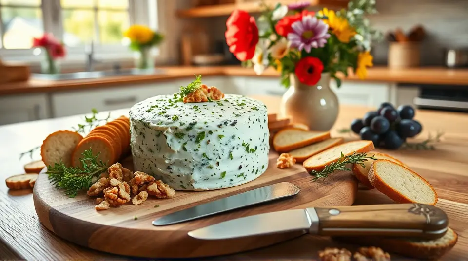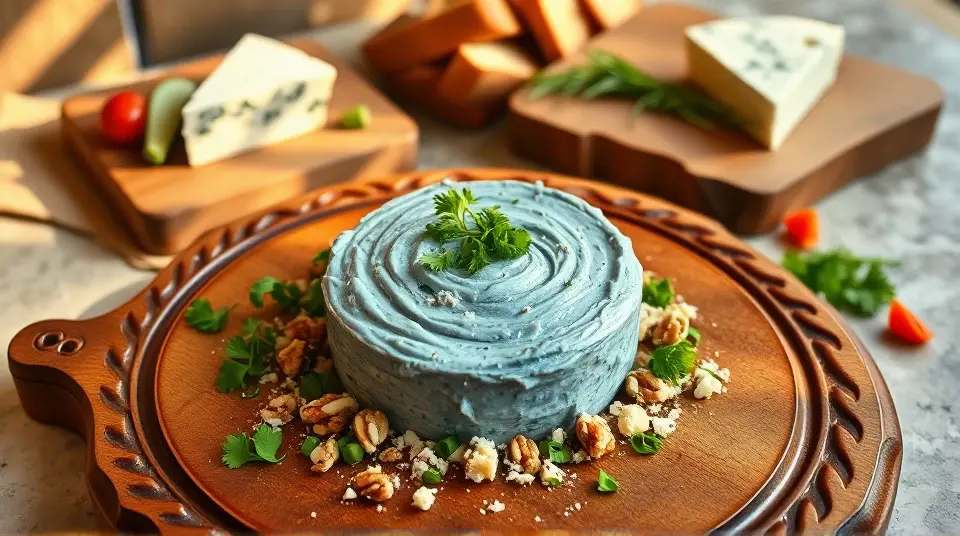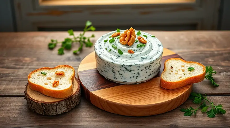 # Blue Cheese Herb Spread 🧀🌿 This delightful Blue Cheese Herb Spread is a flavorful addition to any gathering! Whether you’re hosting a party, enjoying game night, or simply looking for a tasty snack, this creamy spread will impress your guests and elevate your cheese board. The blend of bold blue cheese and fragrant herbs creates an irresistible combination that's perfect for spreading on crackers, bread, or fresh veggies. ## Ingredients ### For the spread - 2 tablespoons walnuts, finely chopped - 2 tablespoons fresh parsley, chopped - 2 tablespoons chives, chopped - 1 (8 ounce) package cream cheese, softened - 1/2 cup blue cheese, crumbled ## Instructions - In a food processor, combine the walnuts, parsley, and chives. Process until they are finely chopped. > 🌰 **Tip**: Toast the walnuts in a dry skillet for a few minutes before chopping. This enhances their flavor and adds a lovely crunch to your spread! - Transfer the chopped herb mixture to a small bowl, then stir in the crumbled blue cheese. Set this aside while you prepare the cream cheese. - In the same food processor (no need to clean it), add the softened cream cheese. Process until it’s smooth and creamy. - Incorporate the herb and blue cheese mixture into the cream cheese and blend until everything is thoroughly combined. > 🥄 **Note**: For an ultra-smooth spread, process for longer, but for a bit of texture, pulse a few times for a chunkier finish. - Serve your Blue Cheese Herb Spread at room temperature for the best flavor. Pair with your favorite crackers, sliced baguette, or fresh veggies. ## Variations - **Herb Alternatives**: Experiment with different herbs like dill, basil, or thyme for a unique flavor profile! 🌱 - **Spicy Kick**: Add a pinch of red pepper flakes or a dash of hot sauce for those who enjoy a bit of heat. - **Nut-Free**: Omit the walnuts and consider using seeds like sunflower or pumpkin for added texture. - **Extra Creamy**: For a silkier consistency, fold in a few tablespoons of sour cream or Greek yogurt. Enjoy this delicious spread at your next gathering, and watch your friends and family rave about the flavors! 🥳Images