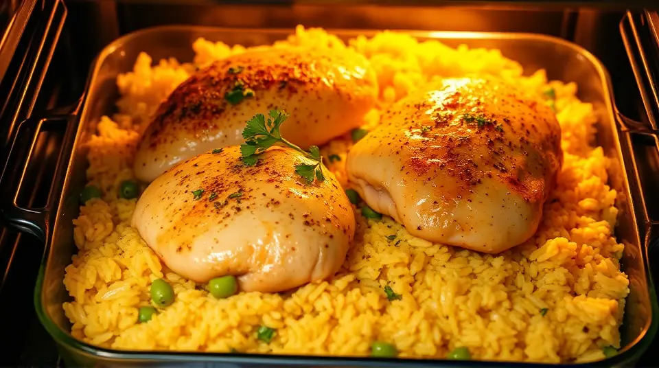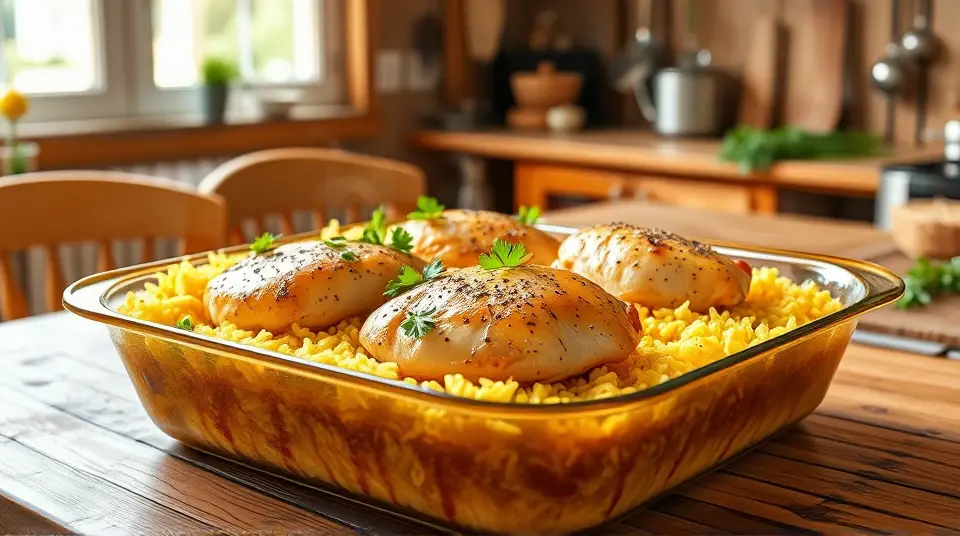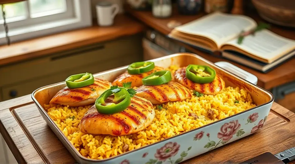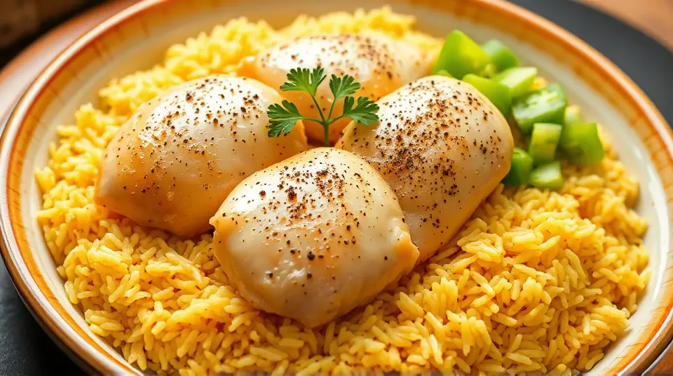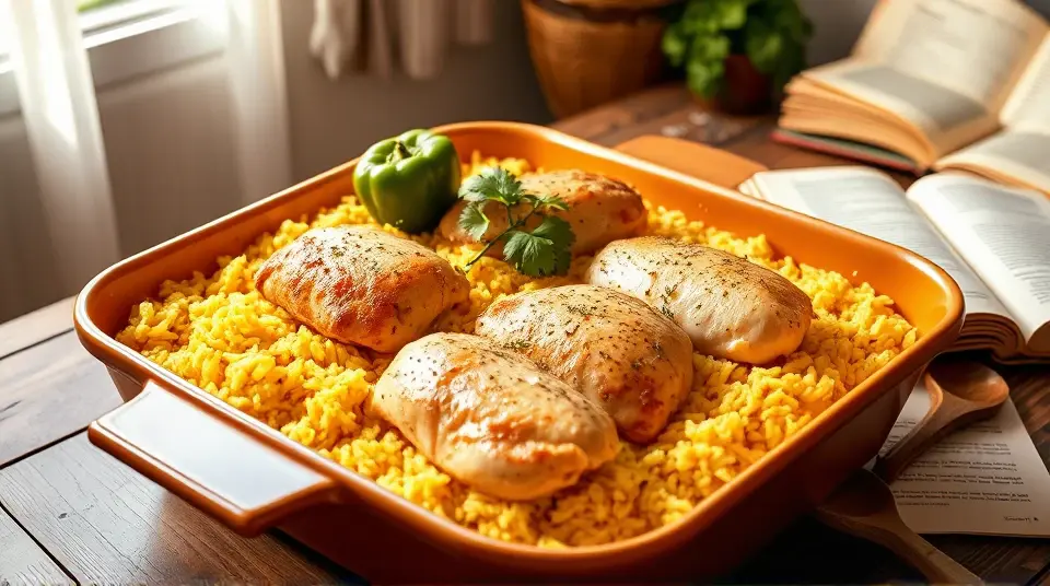 # Easy Chicken and Yellow Rice 🍗🌾 This comforting dish is a one-pan wonder that's as delicious as it is simple! Perfect for busy weeknights or meal prep, this recipe combines tender chicken with fragrant yellow rice for a hearty meal that everyone will love. Plus, it's versatile—add your favorite veggies for an extra boost of flavor and nutrients! ## Ingredients ### For the main dish - 5 1/2 cups of water - 1 tablespoon of chicken bouillon granules - 4 skinless, boneless chicken breast halves - 1 green bell pepper, diced (optional) - 1/4 cup of olive oil - 1 (16-ounce) package of yellow rice - A pinch of ground black pepper - A pinch of poultry seasoning (or to taste) ## Instructions 1. Preheat your oven to 425°F (220°C). Get that heat going! 2. In a large skillet, bring the water and chicken bouillon to a boil. 3. Add the chicken breasts and diced bell pepper, simmering over medium heat until the chicken is no longer pink in the center, about 20 minutes. > 🍽️ **Pro Tip**: Ensure the chicken reaches an internal temperature of 165°F (75°C) for safety. Use a meat thermometer for precise measurement! 4. Once cooked, remove the chicken and pour the remaining broth into a 9x13-inch baking dish. 5. Stir in the yellow rice along with its included seasoning packet and the olive oil into the broth. Mix well to combine. 6. Arrange the chicken breasts on top of the rice mixture. Season with black pepper and poultry seasoning to your taste. 7. Cover the dish with foil and bake in the preheated oven until the liquid is absorbed and the rice is tender, about 45 minutes. 8. Once baked, fluff the rice with a fork before serving, and enjoy this delightful dish! > 🥄 **Serving Suggestion**: Garnish with fresh herbs like parsley or cilantro for a pop of color and flavor! ## Variations - **Vegetable Boost**: Toss in other vegetables such as peas, corn, or carrots for added color and nutrients. - **Spicy Twist**: Add a dash of your favorite hot sauce or diced jalapeños to the broth for a kick! - **Herbed Delight**: Try mixing in herbs like thyme or rosemary for a lovely aroma. Fresh herbs can elevate the flavor! - **Short on Time?**: Substitute ready-to-eat rotisserie chicken, shredding it into pieces and adding it after the rice has baked. Enjoy cooking this warm, fulfilling dish that’s bound to become a favorite at your dinner table! 🍽️✨Images