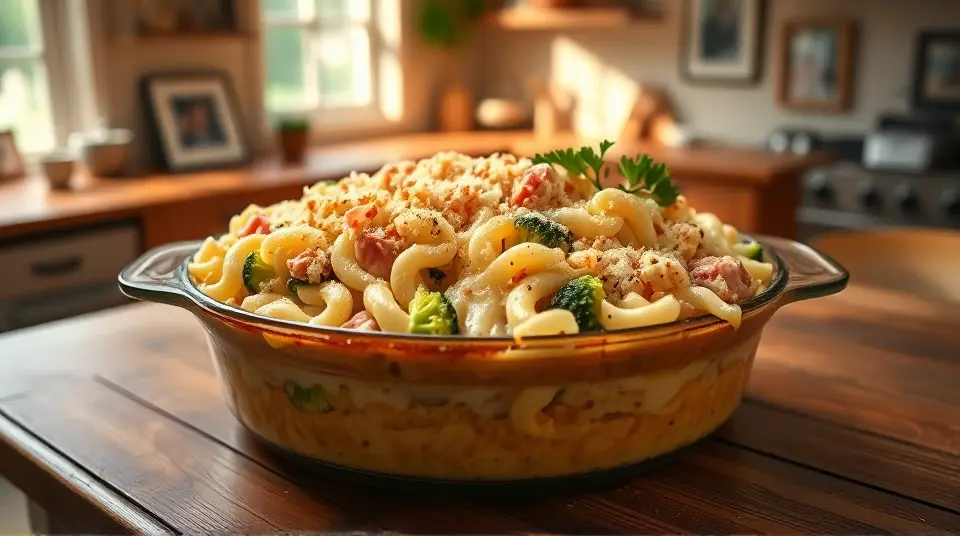 This hearty and comforting casserole is a family favorite, bringing together the savory goodness of ham, the vibrant crunch of broccoli, and creamy Alfredo sauce, all topped with gooey melted cheese. It's the perfect dish for a busy weeknight dinner or a cozy weekend gathering! Pair it with a crisp garden salad for a well-rounded meal.