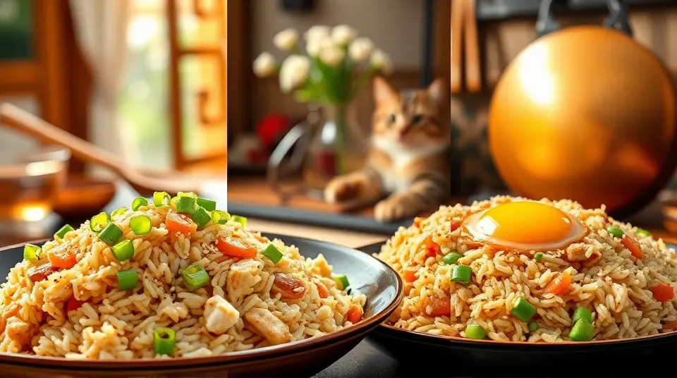 # Savory Chicken Fried Rice 🍚🍗 This Chicken Fried Rice recipe is a delightful and hearty dish that brings together tender chicken, vibrant veggies, and fluffy rice. Perfect for a quick weeknight meal or a flavorful way to use leftover rice, it's a dish everyone will love! Spice it up with your favorite hot sauce or serve alongside steamed vegetables for a complete meal. ## Ingredients ### For the Fried Rice - 3 Chicken Breasts, cubed - 2 Tbsp Butter - 1 Tbsp Sesame Oil - 3 Cloves Minced Garlic - 4 Scrambled Eggs - 16 oz Peas & Carrots (frozen or fresh) - 7 Cups COLD Cooked Rice (about 1.5 cups uncooked) - 1/4 Cup Worcestershire Sauce - 2 Green Onions, chopped - Salt, to taste - Pepper, to taste - Garlic Powder, to taste - Onion Powder, to taste ## Instructions 1. **Season the Chicken**: In a bowl, cube the chicken and season with salt, pepper, garlic powder, and onion powder. 2. **Cook the Chicken**: In a large skillet or wok, heat the butter and sesame oil over medium-high heat. Add the seasoned chicken and minced garlic, cooking until the chicken is no longer pink (about 5-7 minutes). > 🍳 Make sure not to overcrowd the pan; you want the chicken to sear rather than steam. 3. **Scramble the Eggs**: Push the chicken to one side of the skillet. Add the scrambled eggs and cook for 2-3 minutes until they’re fully cooked. 4. **Stir in Vegetables and Rice**: Add in the peas and carrots, cold cooked rice, and Worcestershire sauce. Stir-fry everything together until it’s well combined and heated through, about 5 minutes. > 🌾 Using cold rice is key! Freshly made rice can become mushy. Leftover rice works best. 5. **Finish with Green Onions**: Stir in the chopped green onions and sprinkle with black pepper to taste. Serve hot! > 🥡 Leftovers can be stored in an airtight container in the fridge for up to three days. Just reheat in the microwave or on the stovetop! ## Variations - **Add More Veggies**: Incorporate bell peppers, broccoli, or snap peas for extra crunch and color. 🥦 - **Spicy Kick**: Add some sriracha or chili flakes if you prefer a bit of heat! 🌶️ - **Protein Swap**: This recipe works great with shrimp, beef, or tofu instead of chicken. Adjust cooking times as necessary. - **Low-Carb**: Substitute rice with riced cauliflower for a healthier twist without sacrificing flavor. Enjoy your delicious homemade Chicken Fried Rice—perfect for sharing with family and friends! 🍽️Images