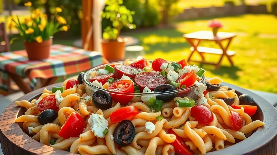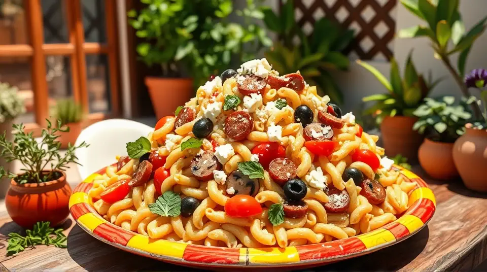 Enjoy your Greek Pasta Salad, bursting with delightful flavors and fresh ingredients! ππ₯