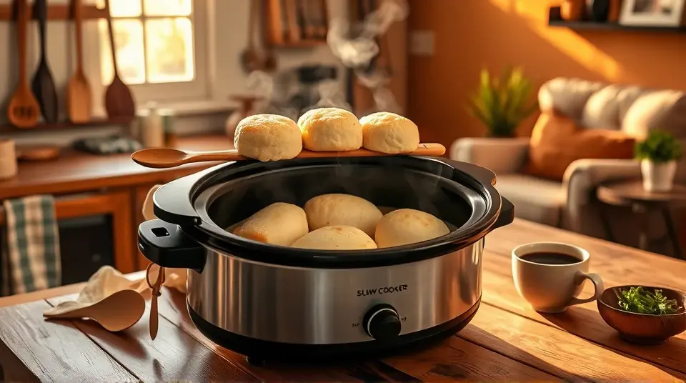 - Dumplings time: About 30 minutes before serving, gently drop the torn biscuit dough on top of the meal in the slow cooker.