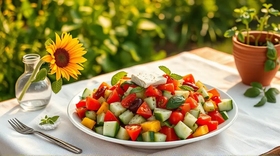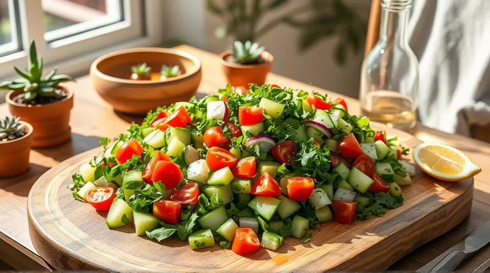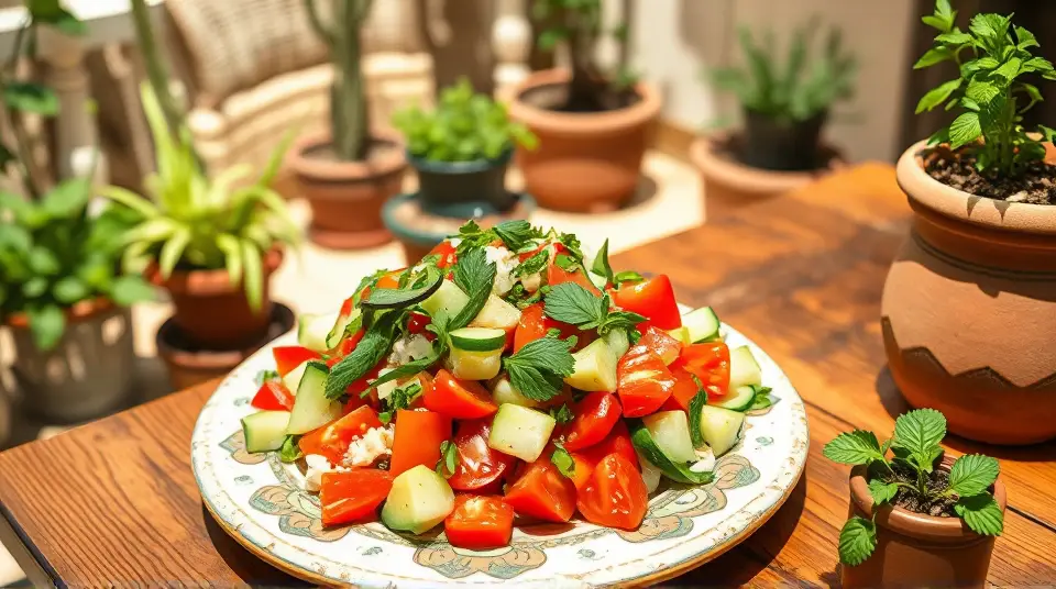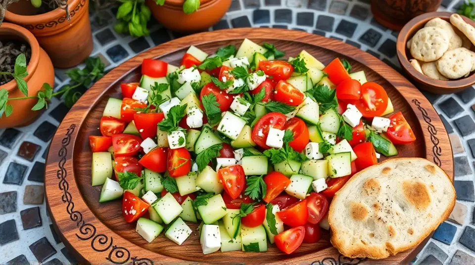 This vibrant salad is not only a feast for the eyes but also a refreshing addition to any meal! With its crisp cucumbers, juicy tomatoes, and aromatic herbs, it brings a burst of fresh flavor that’s perfect for warm days or hearty feasts. It's a great side for grilled meats or simply as a light lunch on its own. Pair with pita bread for a complete Mediterranean experience! 🍞🍋