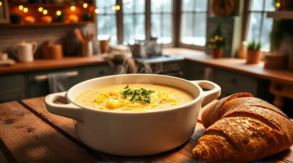 # Cozy Winter Leek and Potato Soup 🍲❄️ Warm up your chilly days with this comforting leek and potato soup. It's creamy, rich, and loaded with flavor, making it an ideal choice for a cozy night in or a gathering with loved ones. The pairing of leeks and potatoes creates a delightfully smooth texture, while optional shredded cheese adds an extra layer of indulgence. Serve it alongside crusty bread for the ultimate winter meal! 🥖❤️ ## Ingredients ### For the soup - 2 tablespoons butter (add more if needed for richness) - 2 leeks, cleaned and chopped - 1/2 cup chopped onion - 6 potatoes, peeled and cubed - 4 cups chicken broth (or vegetable broth for a vegetarian option) - 1 cup half-and-half (or heavy cream for a thicker soup) - 4 ounces shredded cheese (optional, for a cheesy twist) - 1 tablespoon chopped fresh parsley (for garnish) - 1 teaspoon garlic powder - Salt and ground black pepper to taste ## Instructions 1. Melt the butter in a pot over medium heat. Add the leeks and onion, cooking until they’re tender, about 5 minutes. 2. Stir in the cubed potatoes and chicken broth. Bring the mixture to a simmer and cook until the potatoes are tender, approximately 20 to 25 minutes. 3. Slowly pour in the half-and-half, continuing to simmer until the soup has slightly thickened, around 15 minutes longer. 4. If you're using cheese, stir it in along with the parsley, garlic powder, salt, and pepper. Let the cheese melt into the soup, which should take about 5 minutes. > 🥣 For an extra silky soup, use an immersion blender to puree a portion of the soup, then mix it back in for a creamy texture without losing texture altogether. ## Variations - **Vegan option**: Substitute butter with olive oil, use plant-based cream, and add nutritional yeast for cheesy flavor without dairy. - **Spicy kick**: Add a pinch of red pepper flakes or a splash of hot sauce for some heat. - **Herb-infused**: Experiment with fresh herbs like thyme or rosemary added during cooking for a fragrant twist. - **Chunky style**: Reserve a few potato cubes and add them back to the blended soup for added texture. Enjoy your deliciously warm bowl of soup and feel free to customize it to your taste! 🌿🥔✨Images