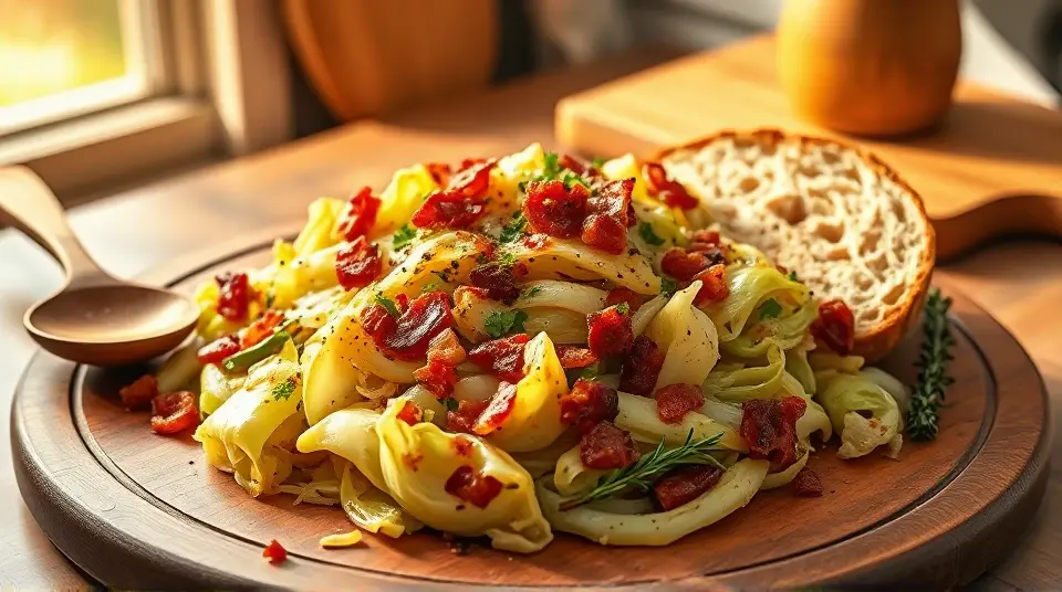 Savory Fried Cabbage with Bacon, Onion, and Garlic 🥬🥓llm