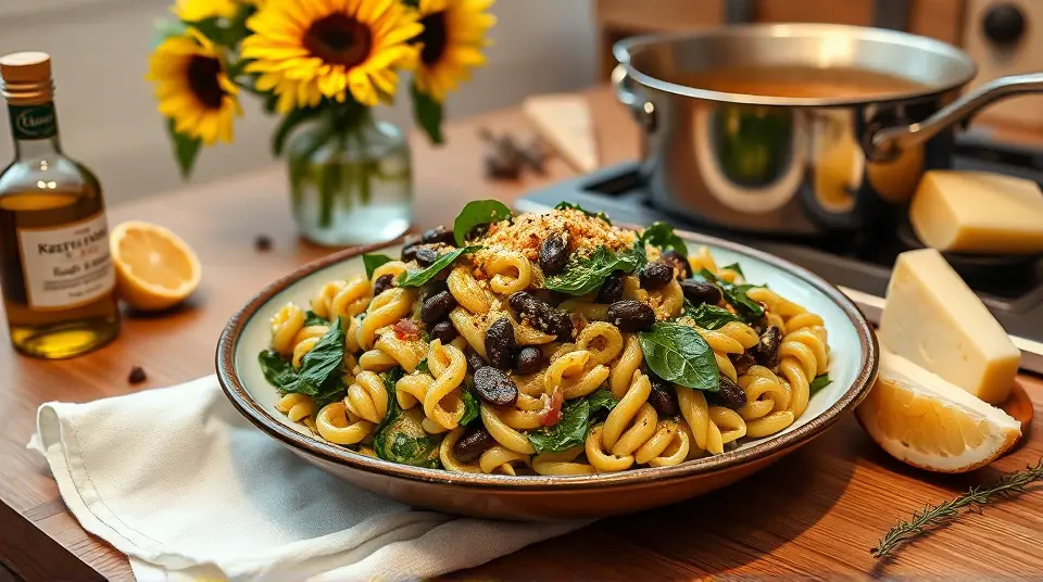 Spinach and Black Bean Pasta 🍝🌱llm