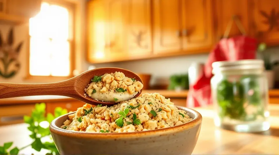# Savory Homemade Ranch Seasoning Mix πΏπ½οΈ Say goodbye to store-bought ranch seasoning! This easy and flavorful homemade ranch seasoning mix is perfect for salads, dips, marinades, and more. It's customizable and made with pantry staples, ensuring you'll always have a delicious seasoning on hand. Plus, you can adjust the flavors to suit your taste. Get ready to enjoy fresh, zesty flavors in every bite! π₯β¨ ## Ingredients - 1 cup dried parsley - 2/3 cup garlic salt - 1/2 cup crushed saltine crackers (for a bit of texture) - 1/2 cup dried minced onion - 1/2 cup onion salt - 1/4 cup onion powder - 1/4 cup garlic powder - 2 tablespoons dried dill weed - 2 tablespoons ground black pepper (optional) ## Instructions 1. In a large mixing bowl, combine all of the ingredients: dried parsley, garlic salt, crushed saltines, dried minced onion, onion salt, onion powder, garlic powder, dill weed, and black pepper (if using). 2. Mix well until all the ingredients are evenly distributed. > π Storing the mix in a sealable container keeps it fresh. You can make a double batch and save it for future use! 3. Transfer the mixture to a sealable container or jar for storage. Label it with the date. > ποΈ This seasoning mix can be stored in a cool, dry place for up to 6 months. ## Ways to Use Your Ranch Seasoning - **Dips**: Combine with sour cream or yogurt for a creamy ranch dip. - **Dressings**: Whisk with mayonnaise and a splash of milk for a quick ranch dressing. - **Seasoned Chicken**: Rub on chicken before grilling or baking for a flavorful punch. - **Veggie Seasoning**: Sprinkle on veggies before roasting for a tasty side dish. ## Variations - **Lower Sodium**: Use a no-salt garlic powder and reduce or omit garlic salt and onion salt for a low-sodium version. - **Spicy Ranch**: Add a dash of cayenne pepper or smoked paprika for a little heat! πΆοΈ - **Herb-Infused**: Mix in dried thyme or chives for additional herb flavors. Enjoy this homemade ranch seasoning mix and elevate your dishes with delightful flavor! πImages