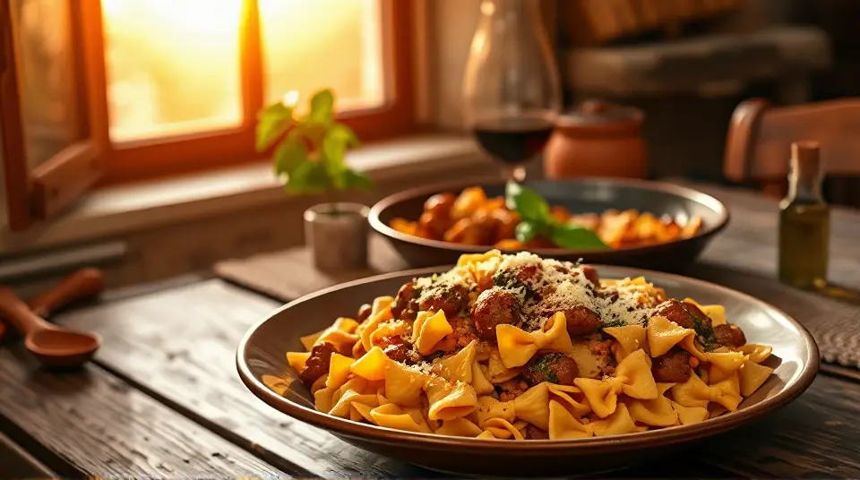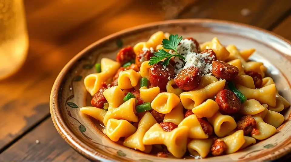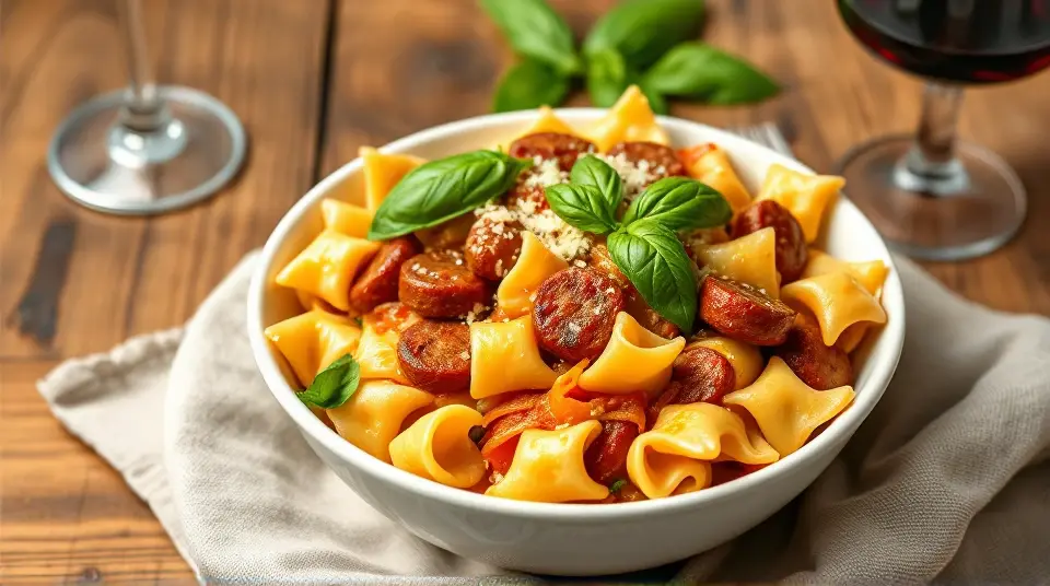 Combine and Serve: Toss the cooked pasta with the sausage sauce. Serve hot, optionally garnished with grated cheese or fresh herbs if desired.