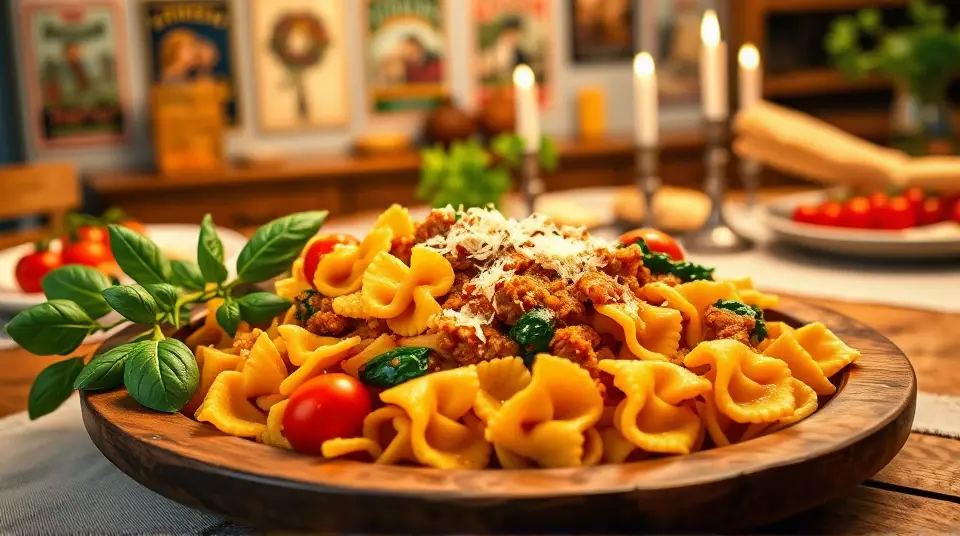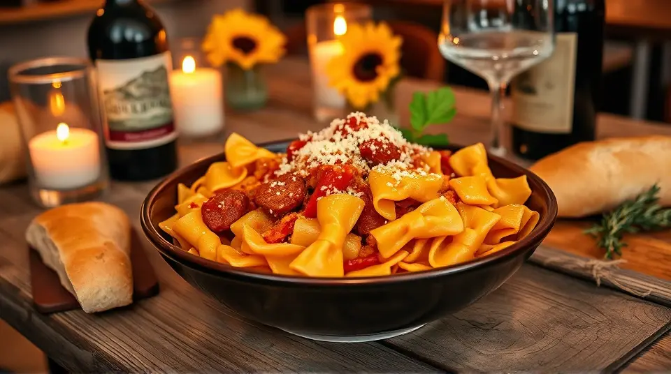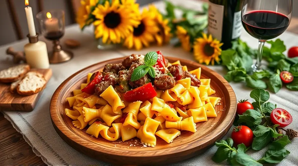 Enjoy your delicious Bow Tie Pasta with Sausage and Sweet Peppers, a cozy dish that brings everyone together around the table!