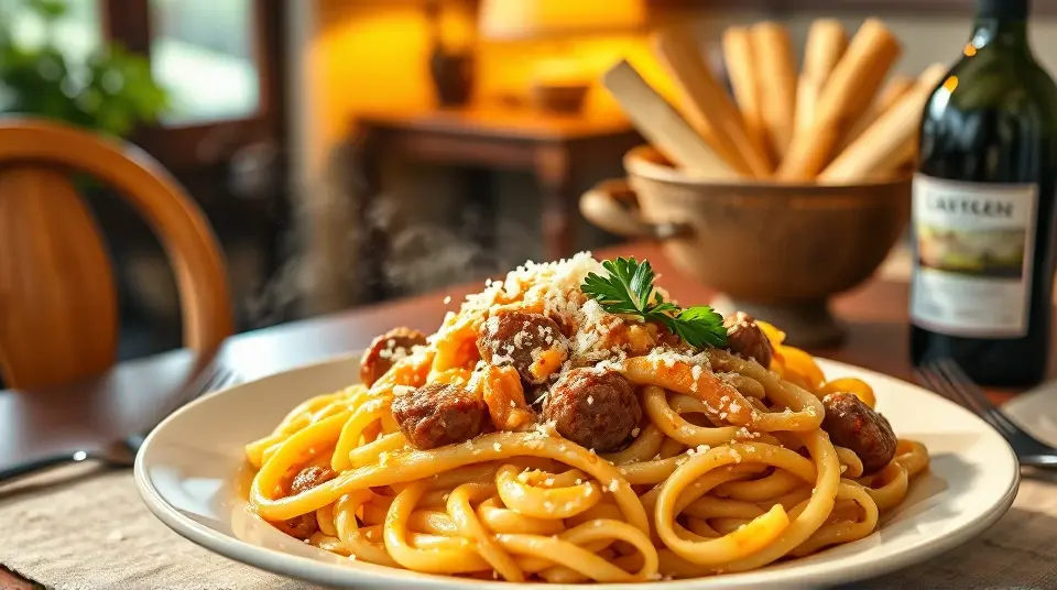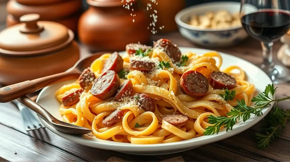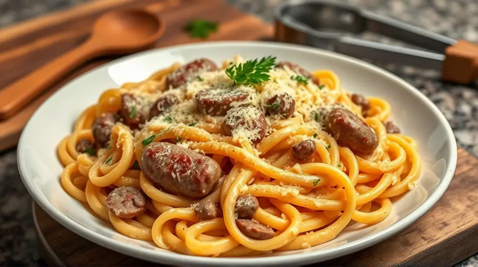 Creamy Sausage Alfredo Pasta 🍝✨