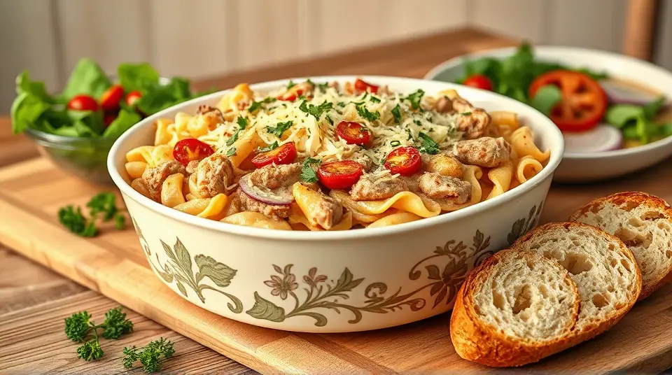 Looking for a comforting dish to utilize leftover turkey? This Turkey Tetrazzini is a creamy, cheesy delight that brings together tender pasta, savory turkey, and a luscious sauce. Perfect for family dinners or cozy nights in, this dish will have everyone asking for seconds!