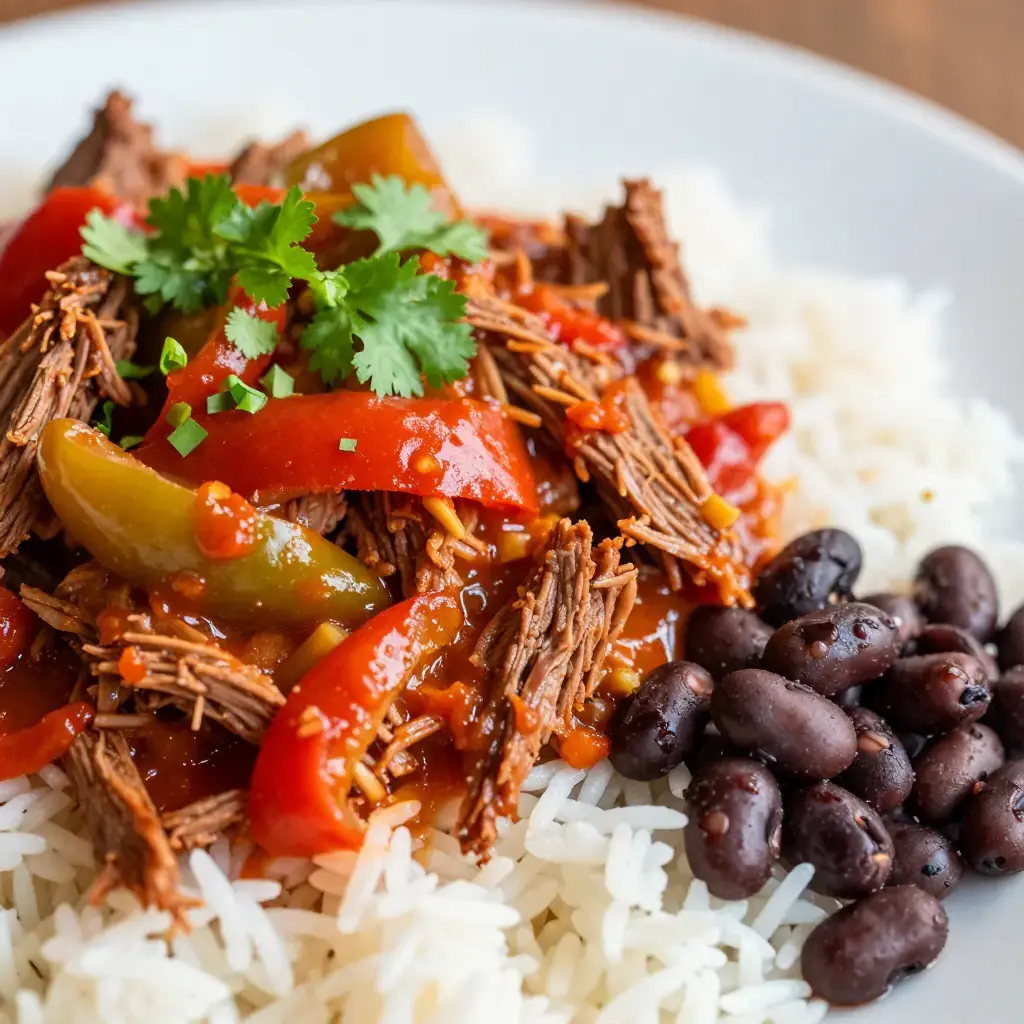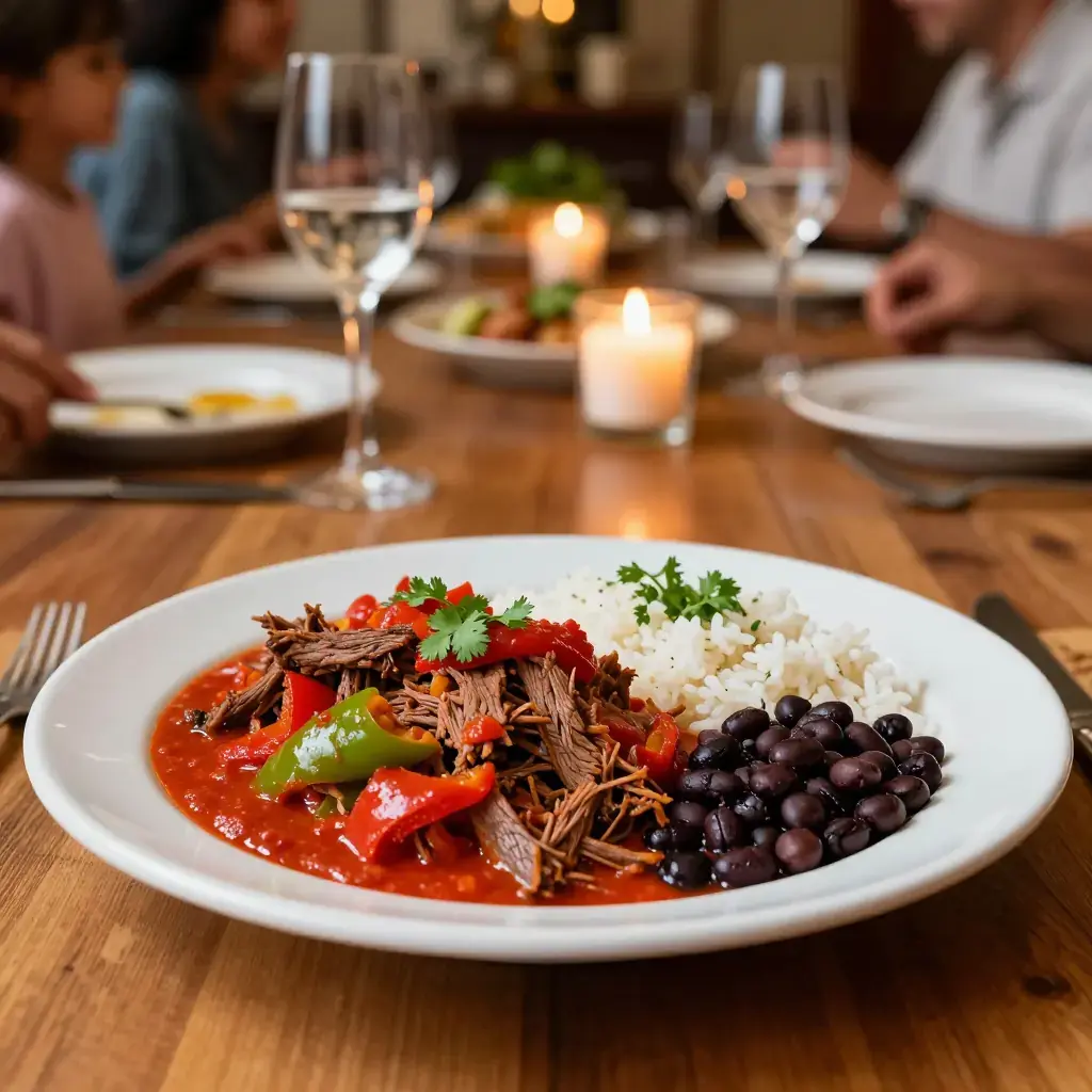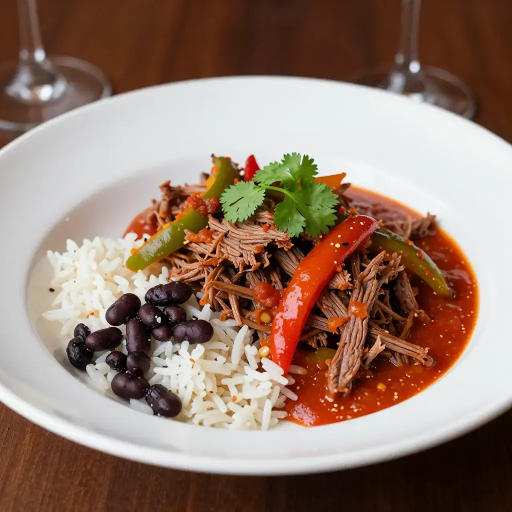 Ropa Vieja — literally "old clothes" — is Cuba's national dish, a slow-braised shredded beef stew that gets its whimsical name from the way the pulled meat resembles colorful rags. It arrived with Spanish colonizers in the 16th century and became deeply Cubanized over generations.