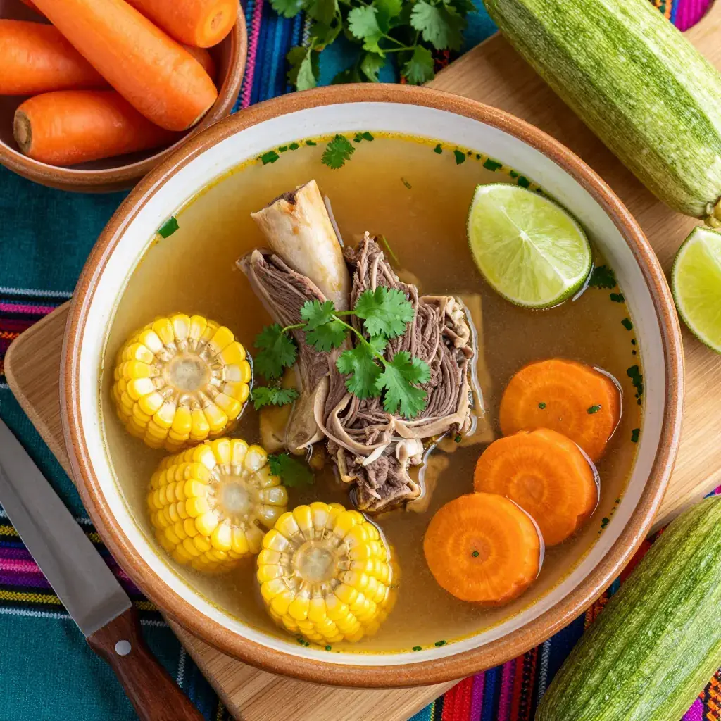 Caldo de Res is Mexico's beloved bone-in beef and vegetable soup, a restorative dish enjoyed as Sunday family cooking and a classic late-night antidote after celebrations. Dating back to pre-colonial traditions merged with Spanish cattle-ranching culture, it is considered deeply heirloom across Mexican regions.