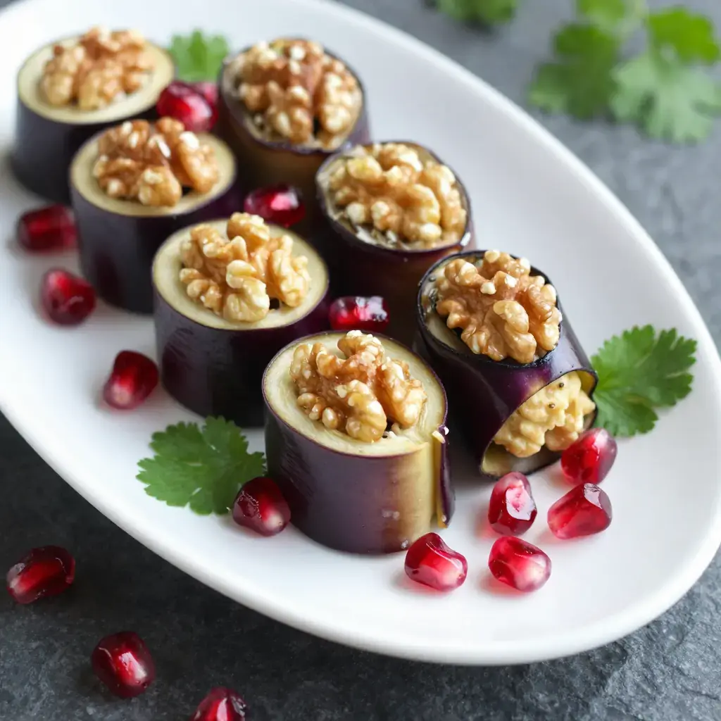 Georgian Walnut-Stuffed Eggplant Rolls (Badrijani Nigvzit)