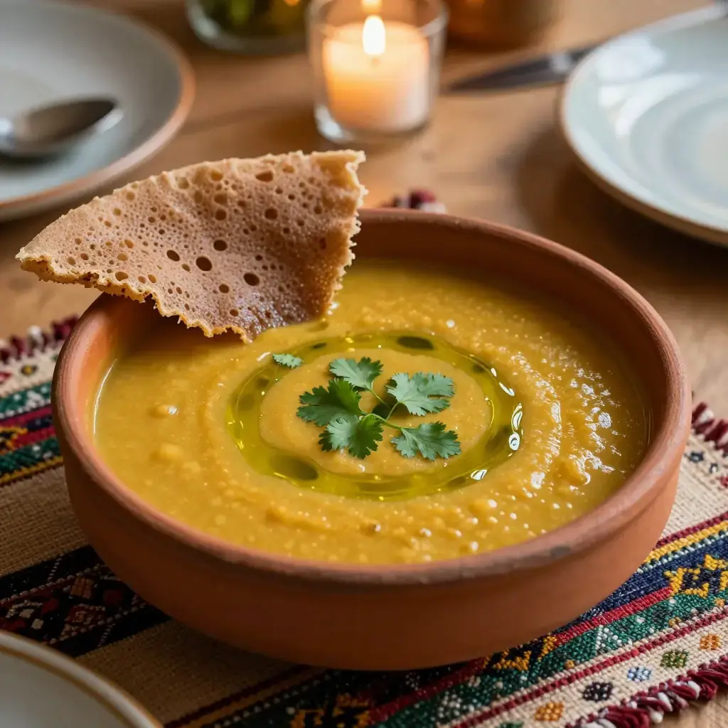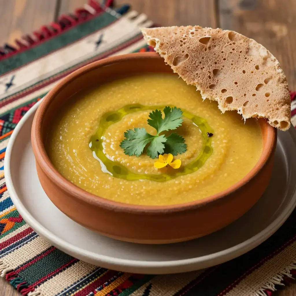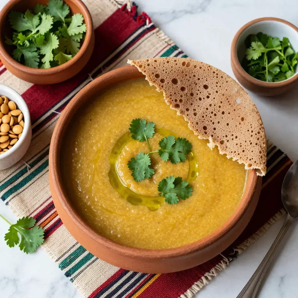 Yemisir shorba is a gentle, warming lentil soup found across Ethiopia, particularly during fasting seasons when the Ethiopian Orthodox Church calendar — one of the world's most demanding, with over 200 fasting days per year — calls for abstention from animal products. Unlike the punchy berbere-spiced yemisir wot (lentil stew), shorba is softer in spice profile, relying on turmeric, ginger, and a restrained hand with aromatics. The result is a silky, golden-red soup that is naturally low in cholesterol, high in plant protein, and deeply comforting. It is commonly served with injera, but also works beautifully with crusty bread.