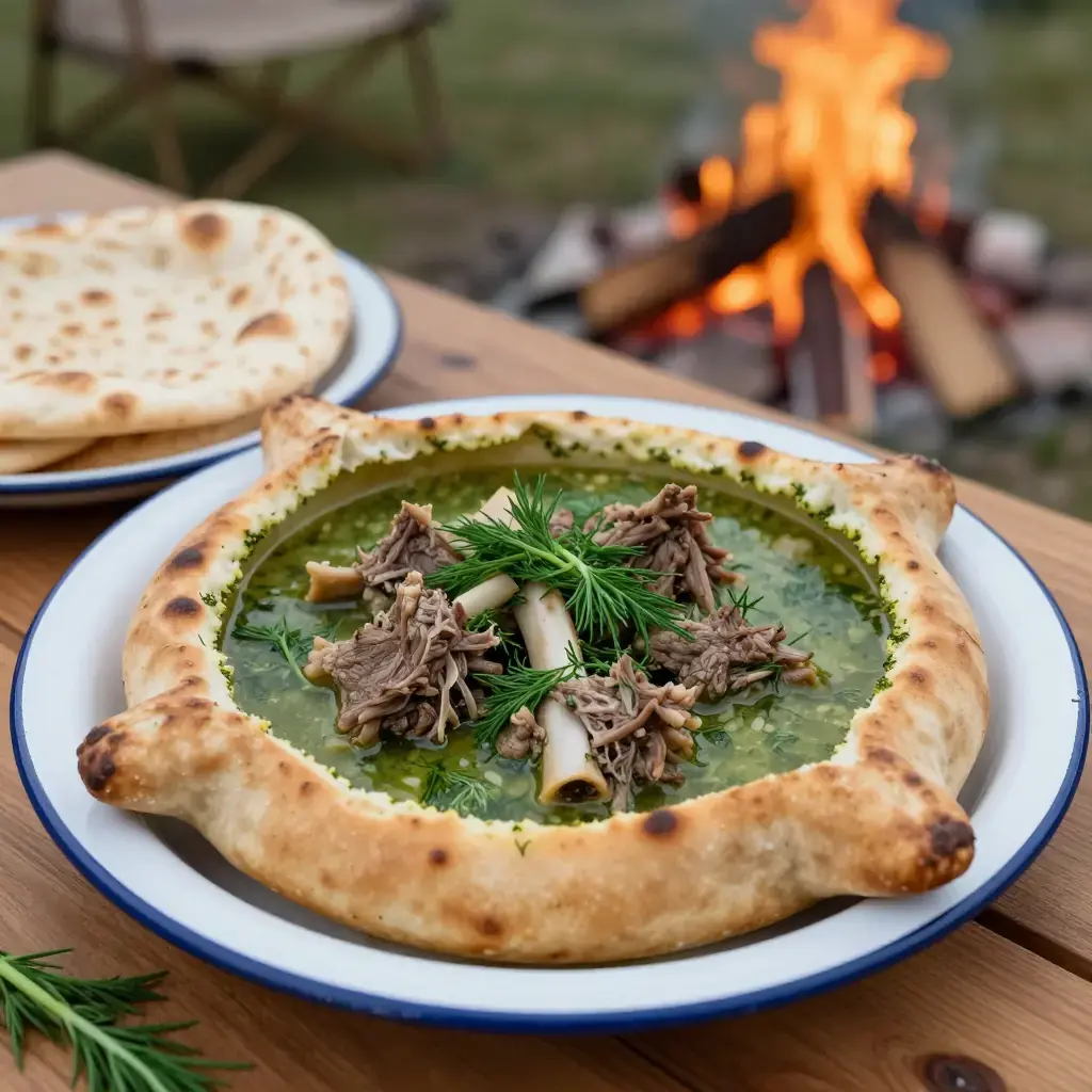 - Serve directly from the pot with fresh Georgian bread (shoti or lavash) for scooping.