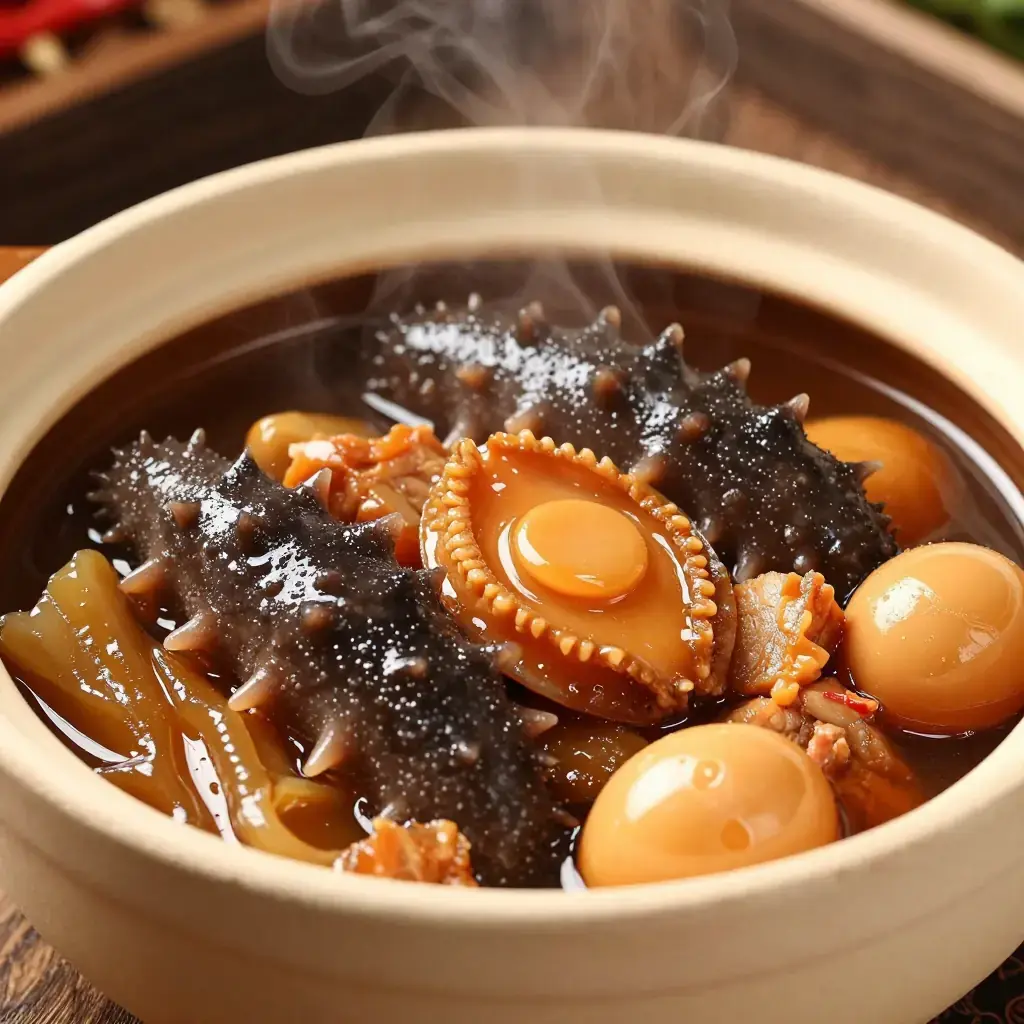 Cook's Notes: Rehydrating sea cucumber properly takes two full days — change the water twice daily and keep refrigerated. The dish is genuinely better the second day. Serve with steamed white rice to absorb the extraordinary braising liquid.