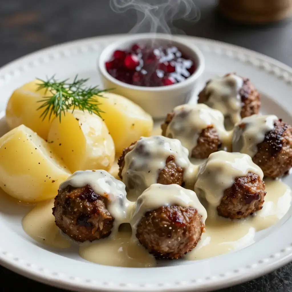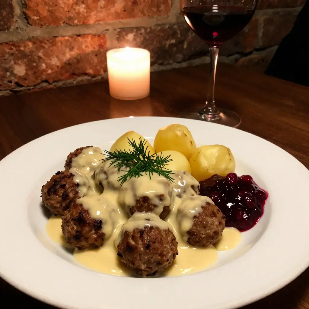 Köttbullar — Swedish meatballs — are perhaps the most internationally recognized dish in Scandinavian cuisine, yet the version known abroad barely scratches the surface of the real thing. At home in Sweden, they are served with a rich cream gravy, lingonberry preserves, and buttered boiled potatoes, creating a combination of savory, creamy, and tart that is uniquely Swedish. The dish dates at least to the 18th century and is central to the julbord (Christmas table).