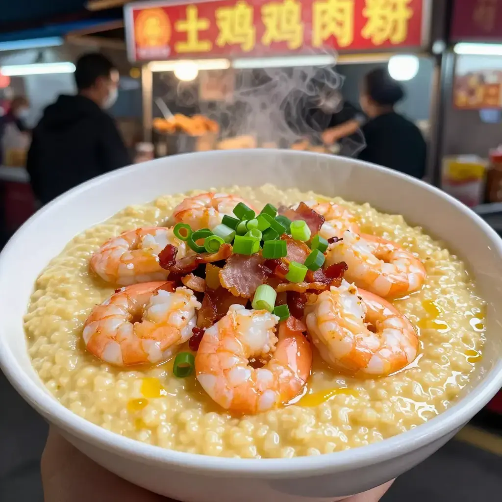 Shrimp and grits began as a humble Low Country breakfast along the coast of Georgia and South Carolina — shrimpers eating cheap, filling food before heading out on the water. By the 1980s it had crossed into restaurant culture and become a defining dish of the American South. The best versions are neither fussy nor shy: creamy stone-ground grits cooked slow and finished with butter, topped with shrimp cooked in bacon fat with garlic and a splash of hot sauce. This is honest, extraordinary food.