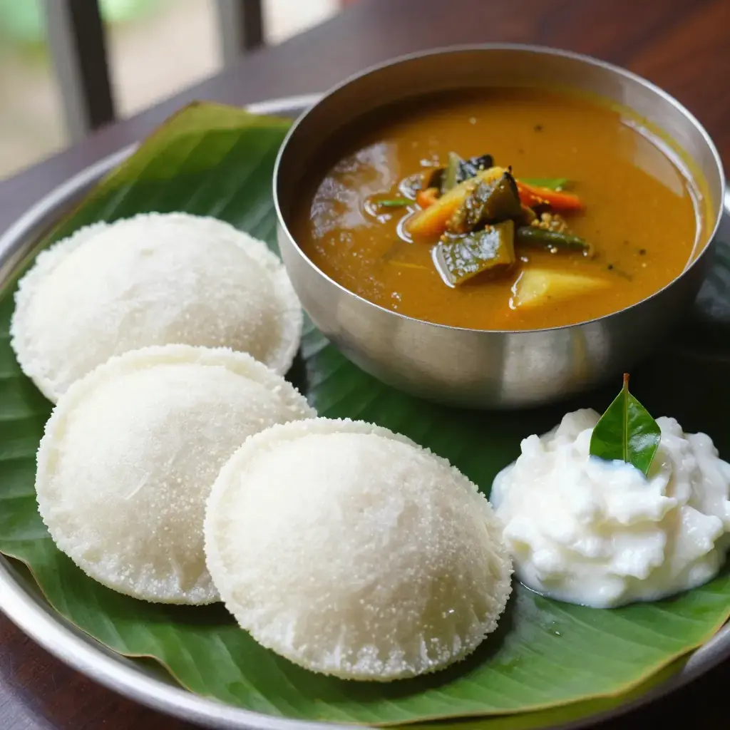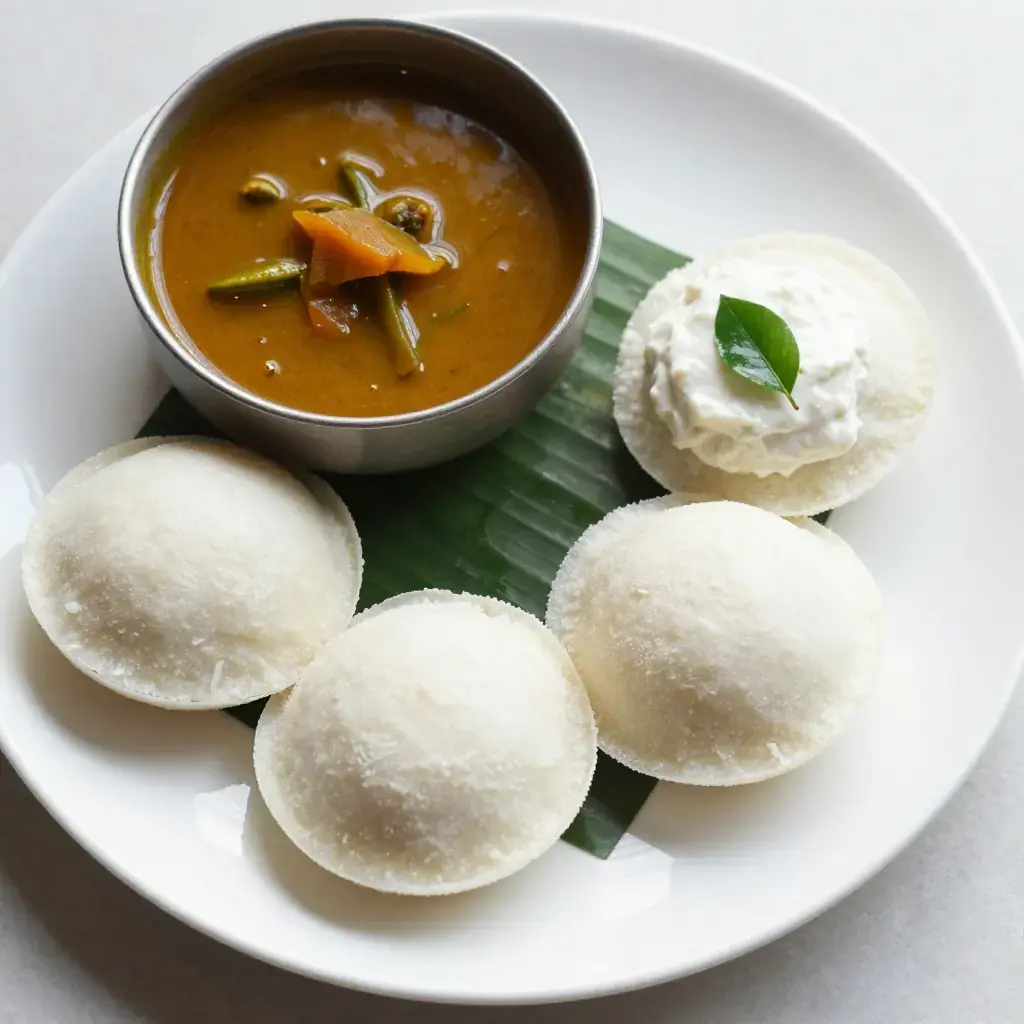 Idli — the soft, white, steamed rice-and-lentil cakes of South India — are one of the most nutritionally complete breakfasts in the world, and among the few fermented foods that anchor an entire culture's morning ritual. The batter of rice and urad dal is soaked, ground, and fermented overnight, producing a natural leavening that creates idli's signature spongy texture and subtle tang. Eaten across Tamil Nadu, Karnataka, and Kerala from dawn onward, they are inseparable from sambar — the tangy, spiced tamarind and lentil broth — and coconut chutney. In Chennai, the best idli-sambar is still served on banana leaves.