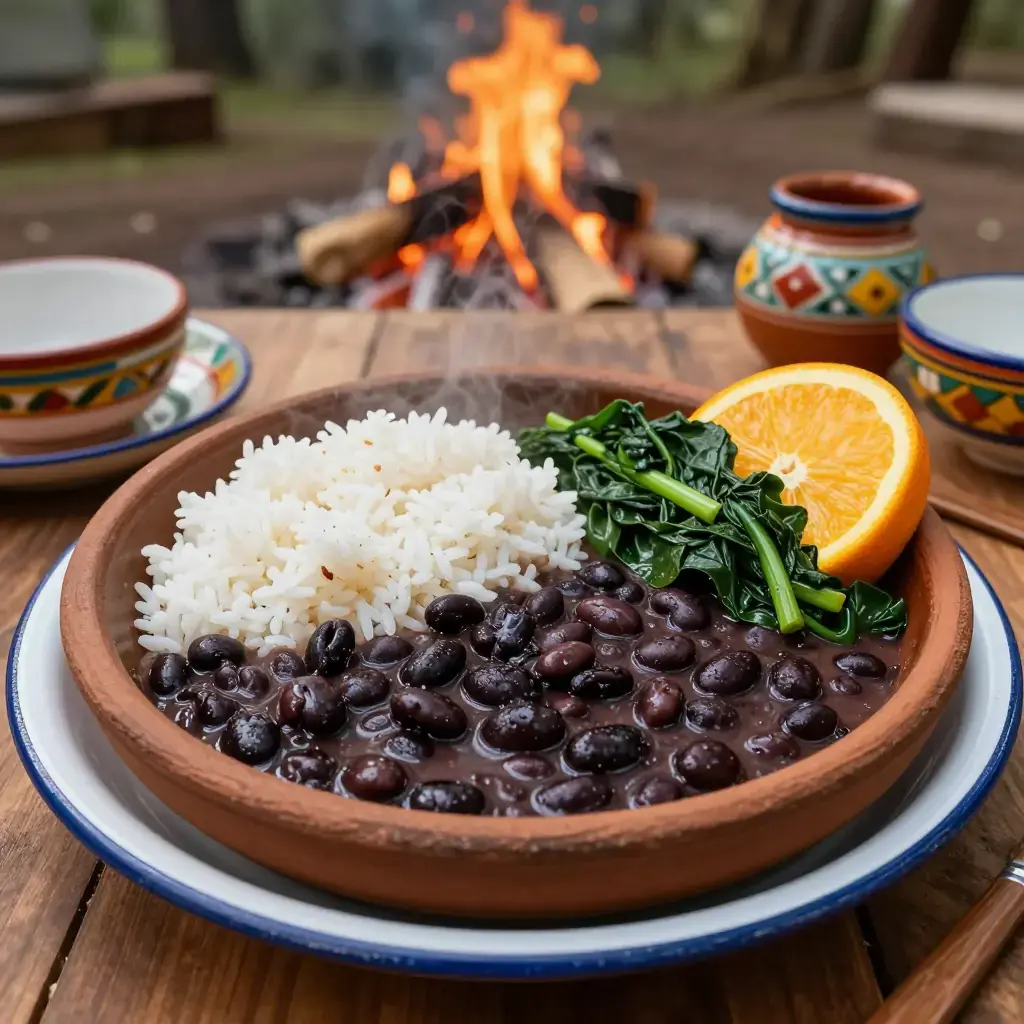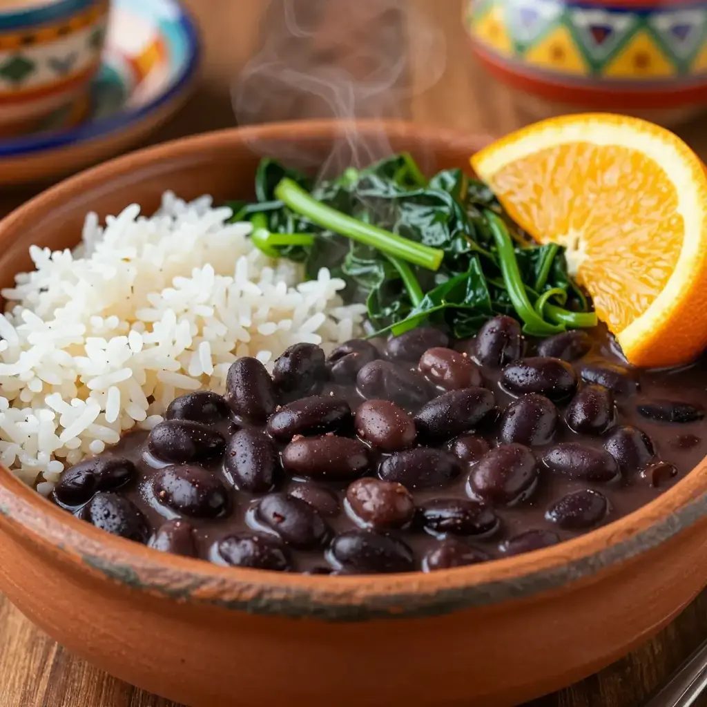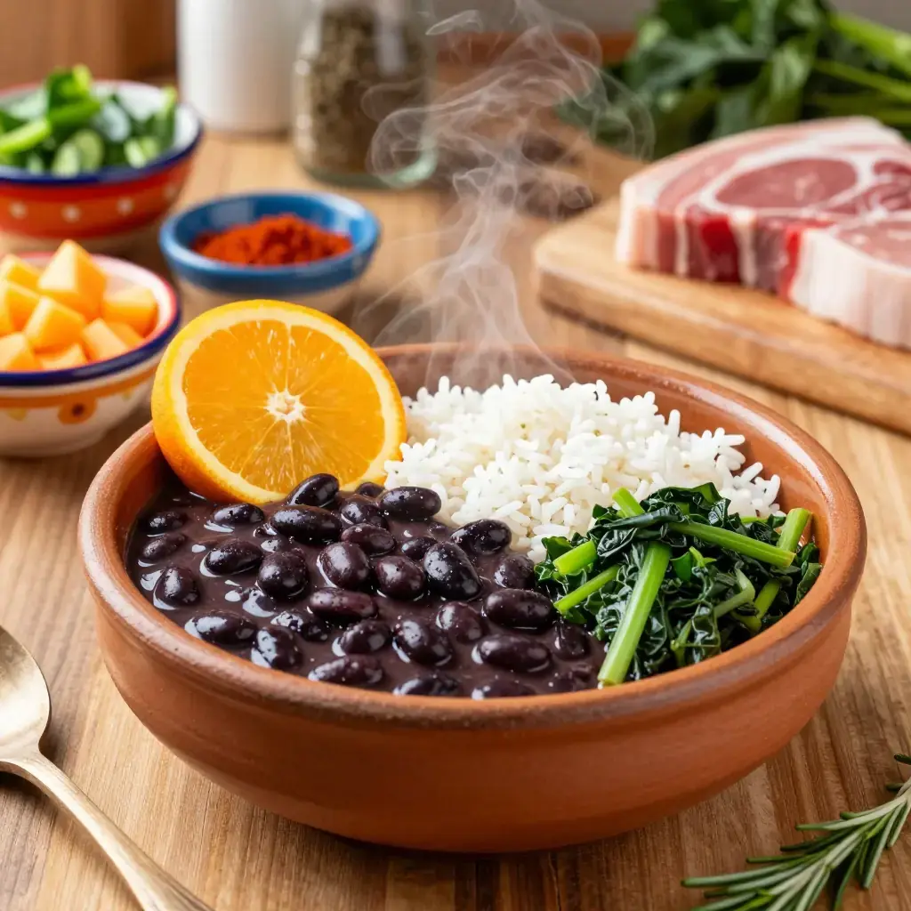 Cook's Notes: The orange slice served alongside is traditional — squeeze it over the beans just before eating to cut the richness. Beans improve dramatically on day two once the flavours have melded. Omit farofa to keep the meal naturally gluten-free.