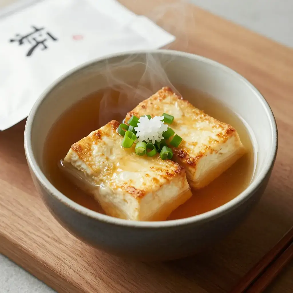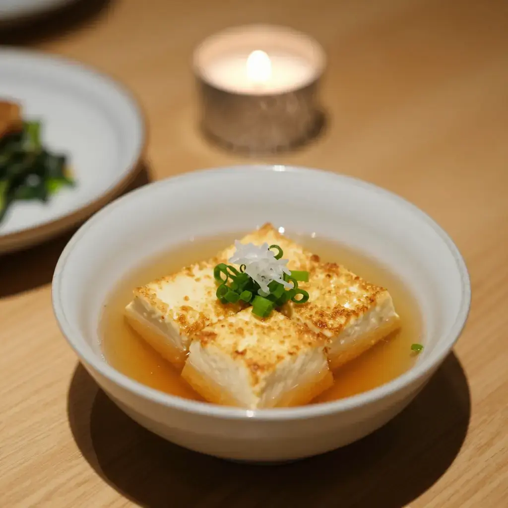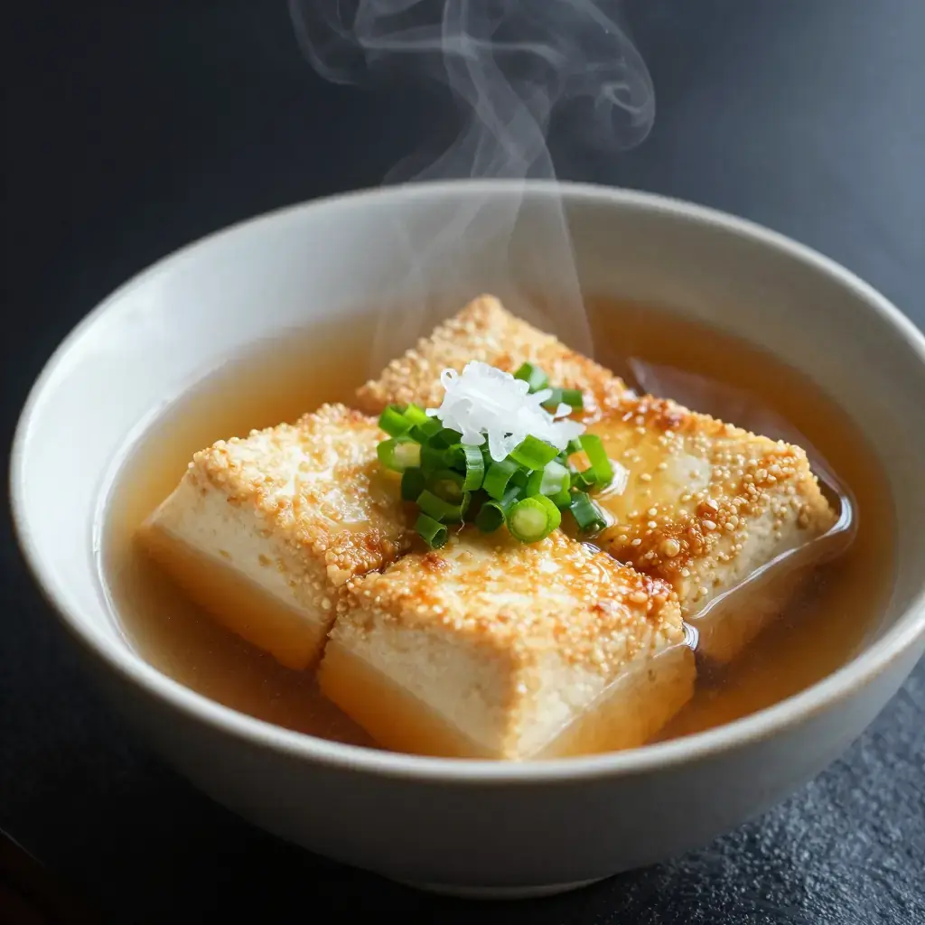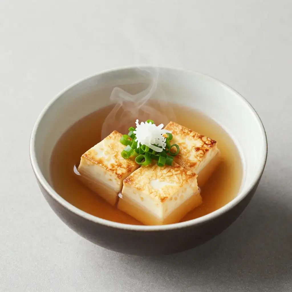 Agedashi tofu is a Japanese izakaya classic in which silken tofu is lightly dusted with potato starch, deep-fried until the exterior is gossamer-crisp, then set adrift in a delicate dashi broth seasoned with mirin and gluten-free tamari. The contrast between the crispy shell, the trembling tofu within, and the umami-laden broth is one of Japanese cooking's most refined pleasures. Using potato starch (katakuriko) instead of wheat flour ensures the dish is naturally gluten-free.