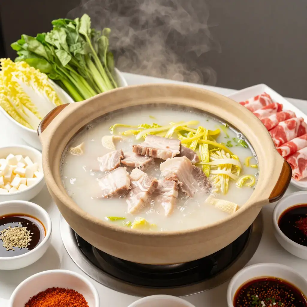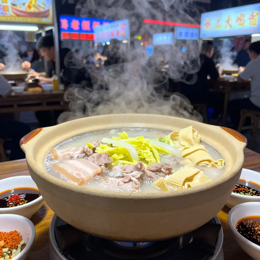 Suan cai bai rou — thinly sliced white pork with Dongbei pickled cabbage — is perhaps the defining hot pot dish of northeastern China. It appears at every celebratory meal from Harbin to Shenyang, especially around the Lunar New Year. The suan cai (酸菜), made from napa cabbage fermented for weeks until deeply sour and complex, provides the backbone of the broth and cuts through the richness of the fatty pork with bracing acidity. This is a dish built on patience: both the fermentation of the cabbage and the long simmer that transforms the pot.