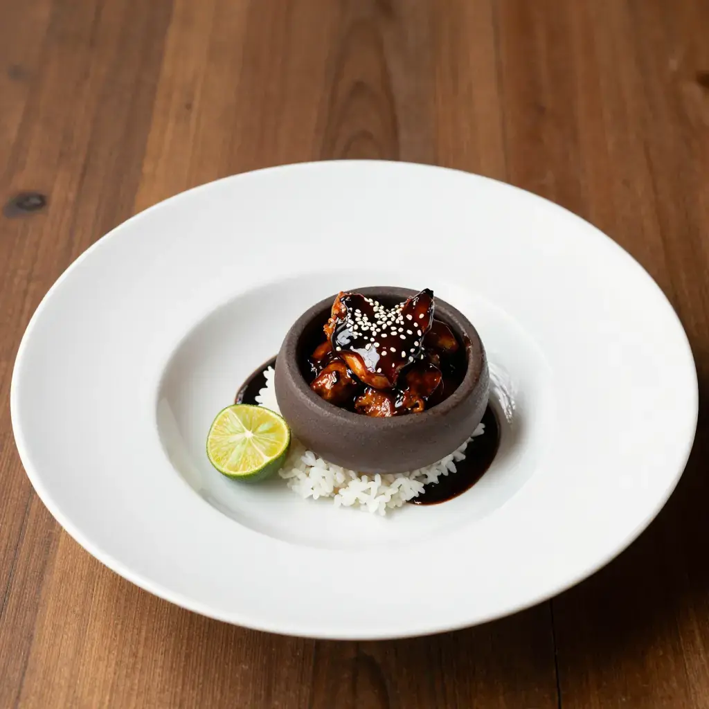 Mole negro is the great dark masterpiece of Oaxacan cooking — a sauce of breathtaking complexity built from over twenty ingredients toasted, ground, and coaxed together over hours. Charred, almost-burnt chiles and Mexican chocolate create a sauce that is smoky, earthy, faintly sweet, and nothing like the simplified "chocolate sauce" of popular imagination. In Oaxacan households, mole negro is reserved for weddings and saints' days. The chicken braises directly in the finished sauce, absorbing its extraordinary depth.