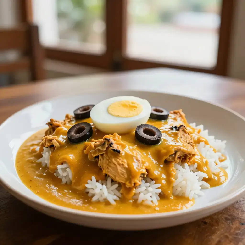 Ají de gallina is one of Peru's great national dishes, a showcase for the country's defining ingredient: the ají amarillo chilli. A golden, moderately spicy pepper with a fruity, almost tropical flavour, ají amarillo is the soul of this dish — it gives the sauce its signature bright yellow-orange colour and a warmth that is aromatic rather than punishing. Poached chicken is shredded and folded into a rich sauce thickened with bread soaked in evaporated milk, walnuts, and Parmesan, a legacy of the Moorish and Spanish influences that shaped Peruvian cuisine. The result is simultaneously comforting and complex, served over white rice with a halved hard-boiled egg and sliced olives.