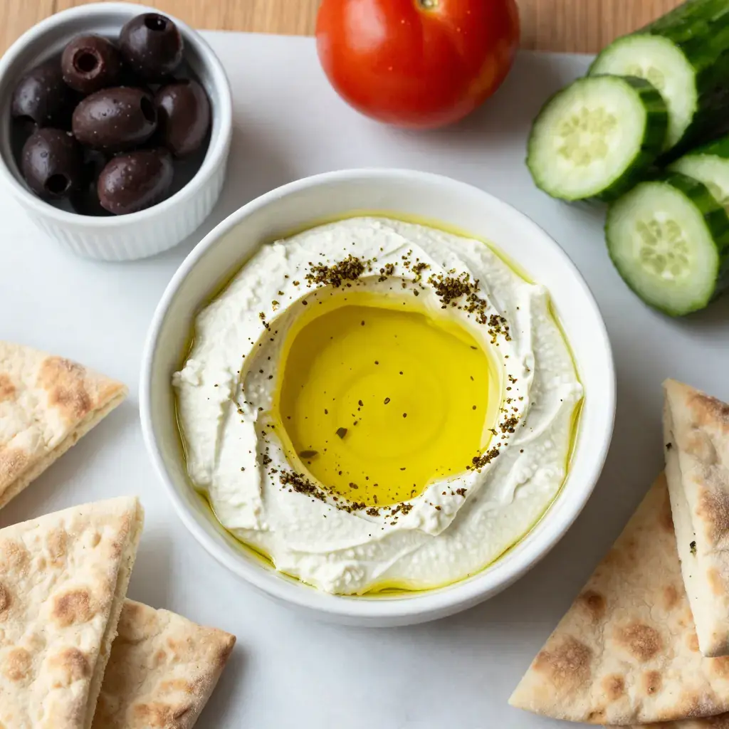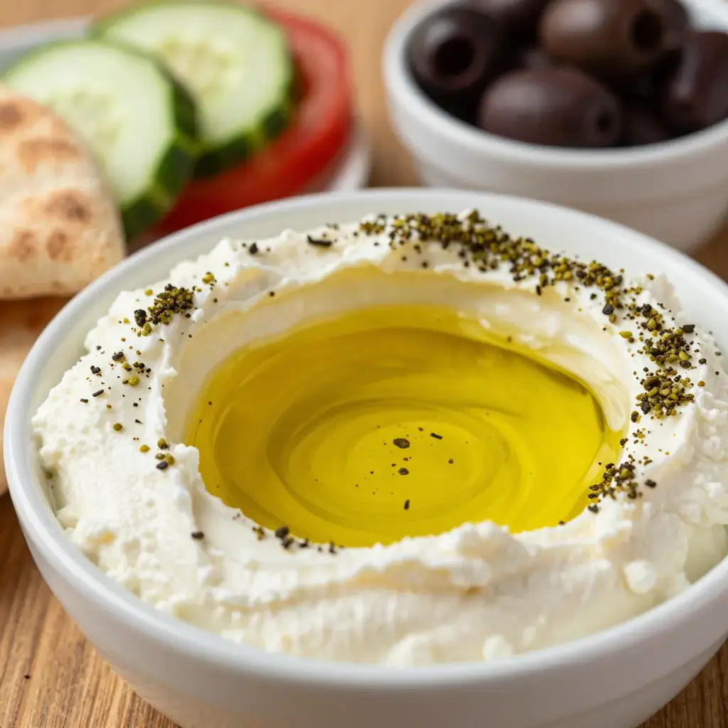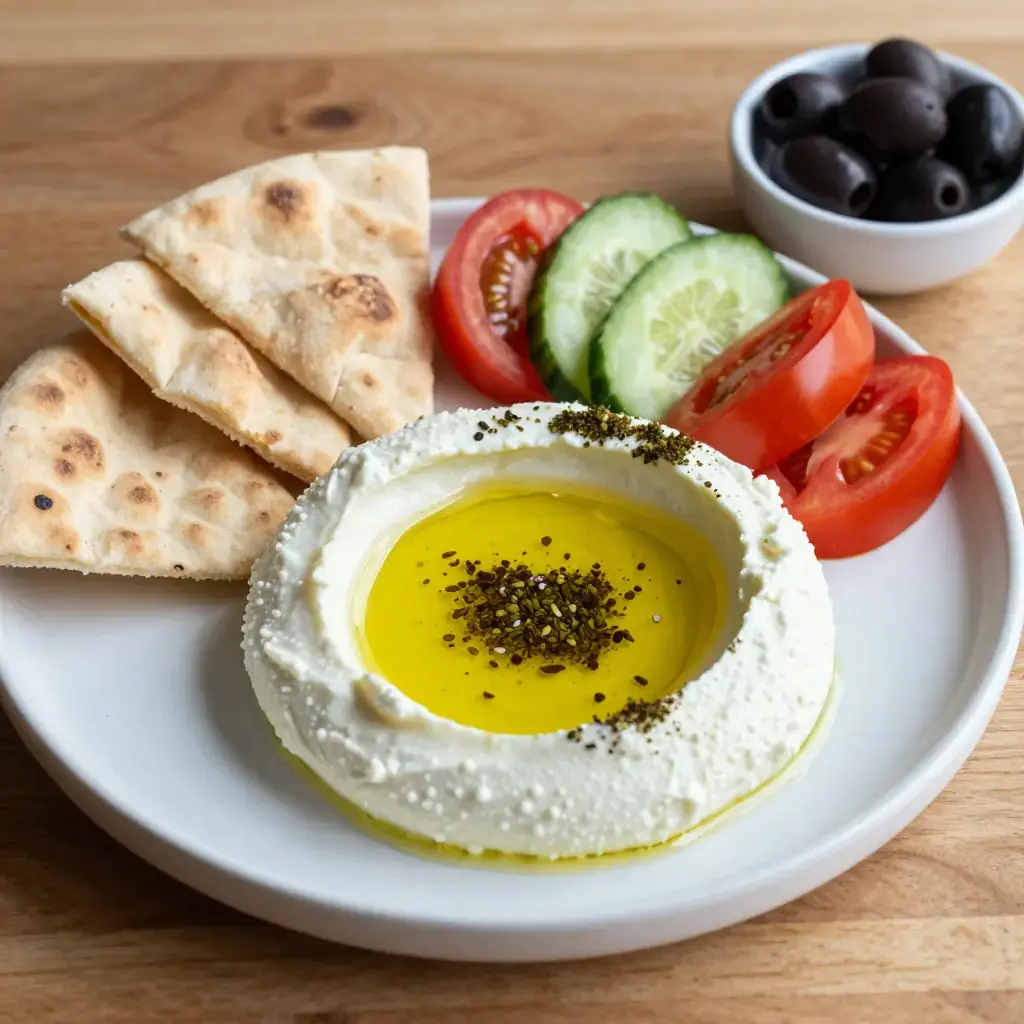 Labneh is yogurt slowly strained through cheesecloth until it transforms into a thick, creamy, spreadable cheese with a clean, pleasant tang. It is one of the oldest fermented foods of the Levant, documented in Arabic culinary manuscripts as far back as the 10th century, and it remains the most important component of the Lebanese meze table and morning breakfast spread. Finished with a heavy pour of good olive oil and dried za'tar (a blend of wild thyme, sumac, and sesame), it is served with warm flatbread and raw vegetables for a breakfast that has not fundamentally changed in a thousand years.