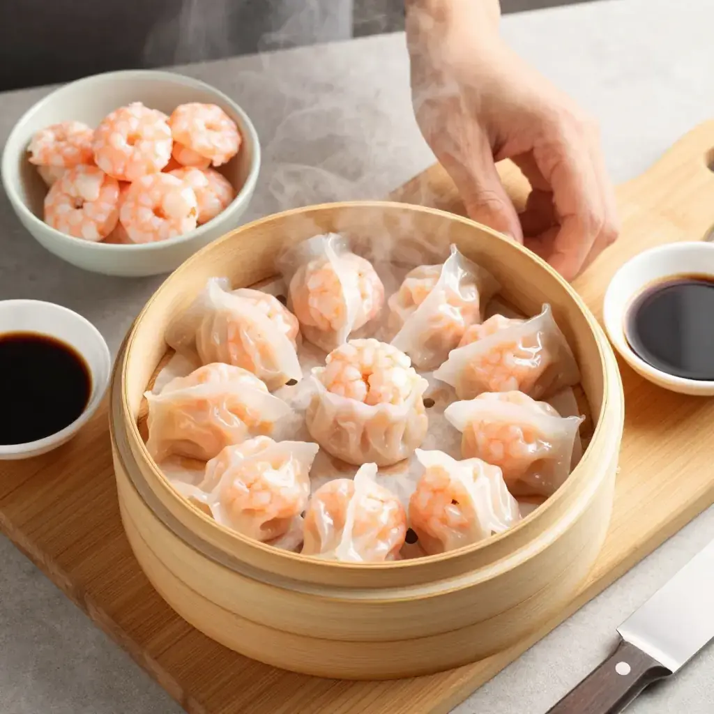 - Line bamboo steamers with parchment. Arrange dumplings without touching. Steam over vigorously boiling water for 7–8 minutes until wrappers turn translucent and filling is cooked through.