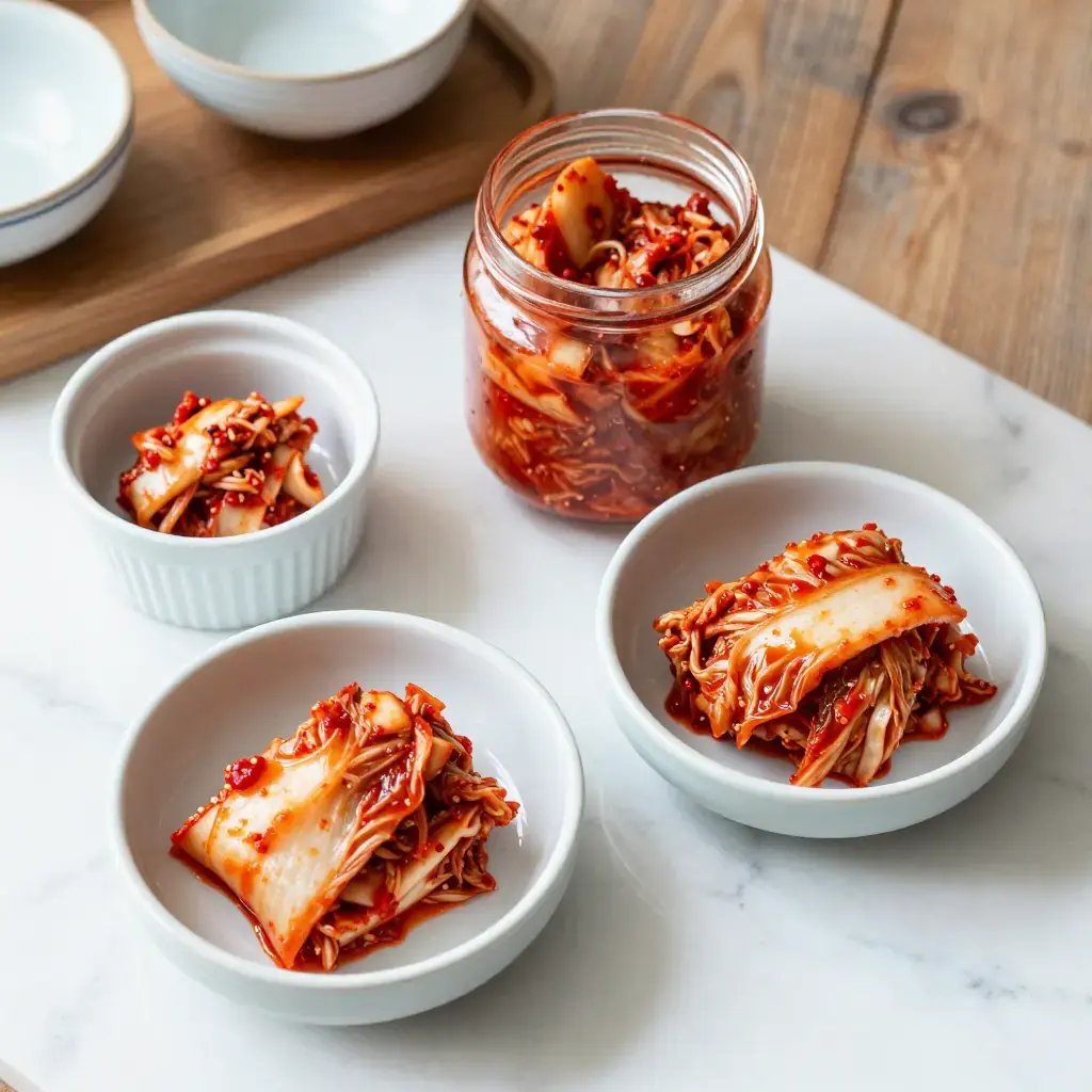 Cook's Notes: For vegan kimchi, substitute the fish sauce and saeujeot with 2 tbsp soy sauce and 1 tbsp miso paste. Taste daily during room-temperature fermentation — the ideal sourness is personal. Freshly made kimchi (geotjeori) is also delicious before any fermentation begins.