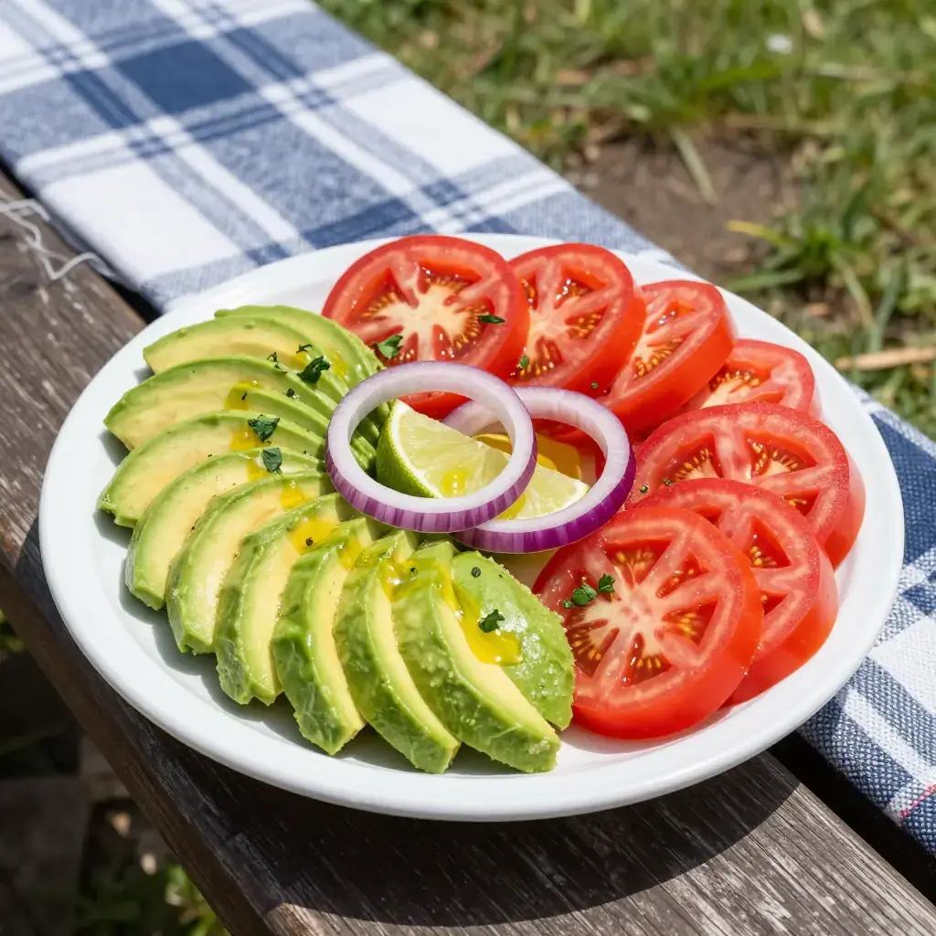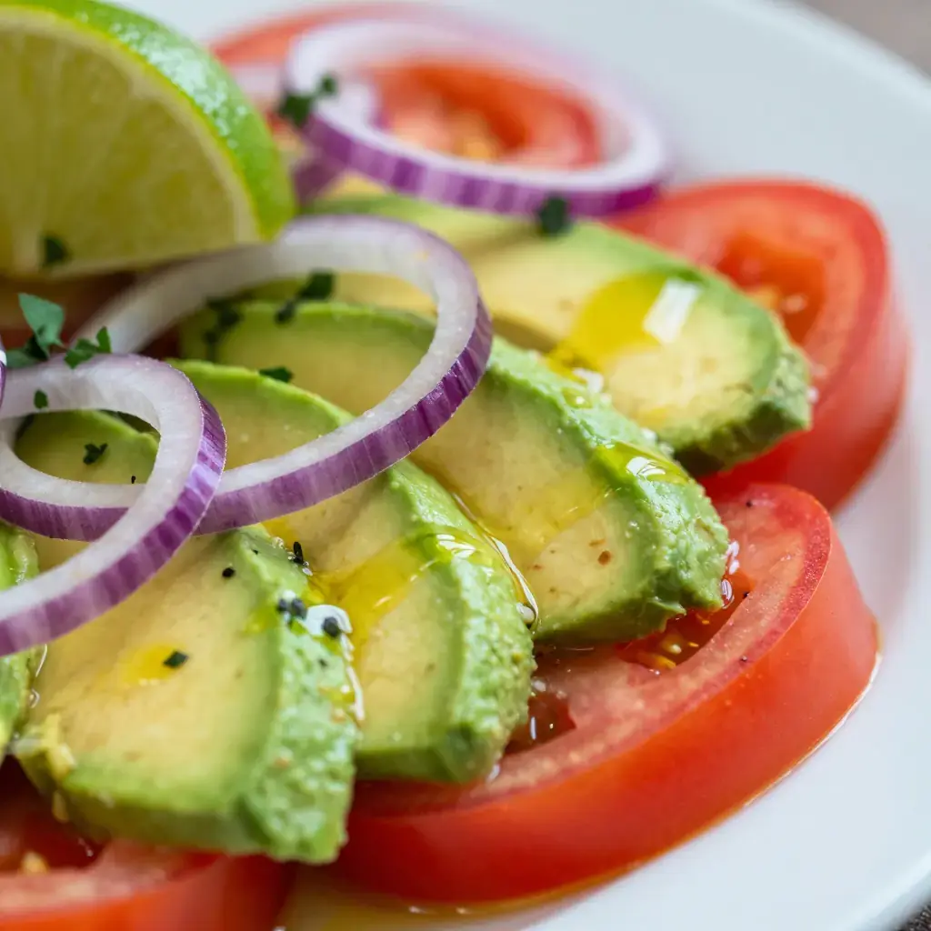 Cook's Notes: This salad waits for no one — avocado oxidises quickly once cut, so dress and serve right away. In Cuba, the avocados used are often large Caribbean varieties with a lighter, more watery flesh than the Hass avocado; adjust lime juice to taste. A pinch of dried oregano rubbed between the palms before sprinkling is a traditional Cuban touch.