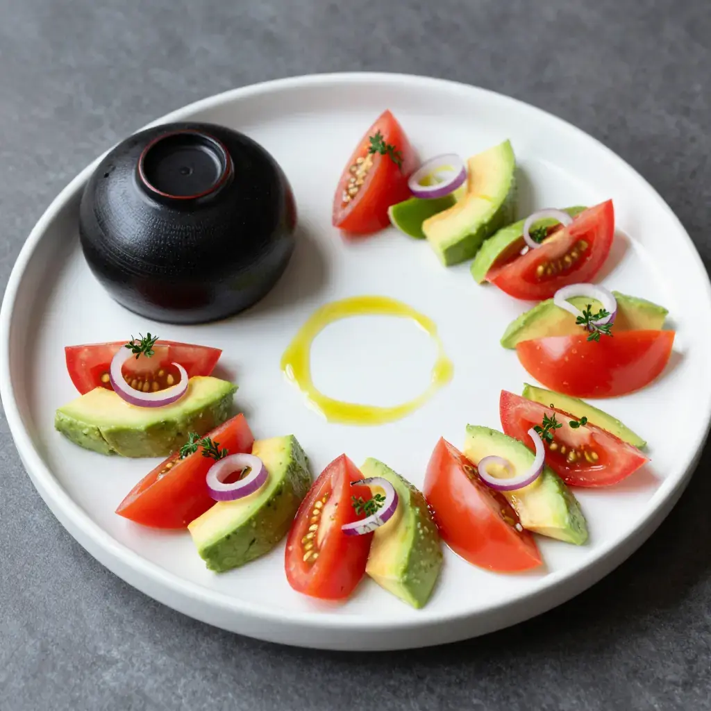 # Ensalada de Aguacate y Tomate On the Cuban table, this simple raw salad of ripe avocado and tomato dressed with olive oil, lime, and garlic appears at nearly every major meal. It is less a recipe than a ritual — the cooling counterpoint to the heat of rice and beans, the rich braise, the fried plantain. Its beauty is in the quality of its few ingredients and the restraint of its seasoning. Serves: 4 ## Ingredients - 2 large ripe avocados, peeled and sliced into wedges - 3 ripe tomatoes (about 400g / 14 oz), sliced into rounds - ½ small red onion, very thinly sliced into rings - 2 tbsp (30ml) extra-virgin olive oil - 2 tbsp (30ml) fresh lime juice - 1 clove garlic, very finely minced or grated - ½ tsp sea salt - Black pepper to taste - Fresh oregano or flat-leaf parsley leaves, to garnish ## Instructions 1. Arrange tomato slices on a large plate or shallow platter. Layer avocado wedges over and between the tomato slices. Scatter red onion rings on top. 2. Whisk together olive oil, lime juice, garlic, salt, and pepper. Drizzle over the salad. 3. Scatter fresh oregano or parsley leaves over the top. Serve immediately at room temperature or slightly chilled. **Cook's Notes:** This salad waits for no one — avocado oxidises quickly once cut, so dress and serve right away. In Cuba, the avocados used are often large Caribbean varieties with a lighter, more watery flesh than the Hass avocado; adjust lime juice to taste. A pinch of dried oregano rubbed between the palms before sprinkling is a traditional Cuban touch.Images