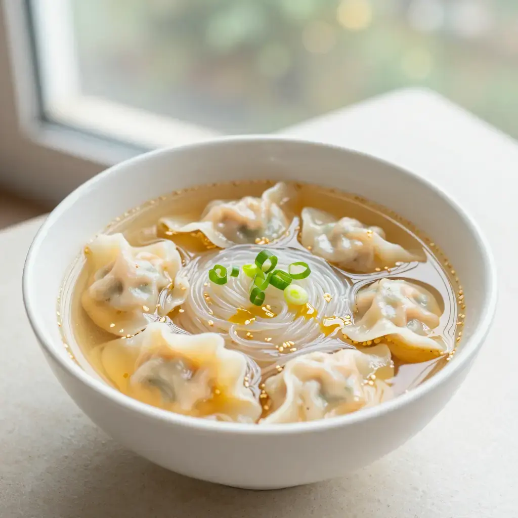 # Bian Rou Bian rou is Fujian's answer to the wonton noodle soup, but its wrapper is strikingly different: sheets of pork skin, pounded until paper-thin, enclose a filling of hand-chopped pork that has been beaten with a mallet until it reaches a springy, paste-like texture. The result is a dumpling that is almost translucent when cooked, with an almost prawn-like snap. Found in breakfast stalls throughout Fuzhou, it is consumed from shallow bowls fragrant with sesame oil and sliced spring onion. Serves: 4 ## Ingredients **For the wrappers:** - 200 g (7 oz) pork loin, sliced paper-thin and pounded flat with a mallet (or substitute thin store-bought wonton wrappers) - 1 tbsp (15 g) tapioca starch **For the filling:** - 350 g (12 oz) pork shoulder, hand-minced or pounded to a coarse paste - 1 tbsp (15 ml) light soy sauce - 1 tsp (5 ml) sesame oil - 1 tsp (5 g) white pepper - 1 tsp (5 g) sugar - 1 tbsp (15 ml) cold water **For the soup:** - 1.2 litres (5 cups) light pork bone stock - 200 g (7 oz) thin rice vermicelli or egg noodles - 2 spring onions, finely sliced - 1 tbsp (15 ml) sesame oil - Salt and white pepper to taste ## Instructions 1. Combine all filling ingredients and beat with chopsticks in one direction for 3 minutes until the mixture becomes slightly sticky and cohesive. 2. If using pork loin wrappers, dust each slice lightly with tapioca starch. Place a teaspoon of filling in the centre of each wrapper, fold over, and press edges firmly to seal into a flat triangular shape. 3. Bring stock to a gentle simmer. Season with salt and white pepper. 4. Cook the noodles in a separate pot of boiling water according to packet directions, about 2–3 minutes. Drain and divide between four bowls. 5. Poach the bian rou in the simmering stock for 3–4 minutes until they float and the pork filling is cooked through. 6. Ladle the hot broth over the noodles and top with the bian rou. Finish with sesame oil and spring onions. **Cook's Notes:** The tradition of pounding pork loin into wrappers is labour-intensive but produces an extraordinary texture — it is worth making for a weekend project. Using commercial wonton wrappers is an acceptable shortcut without sacrificing much flavour.Images