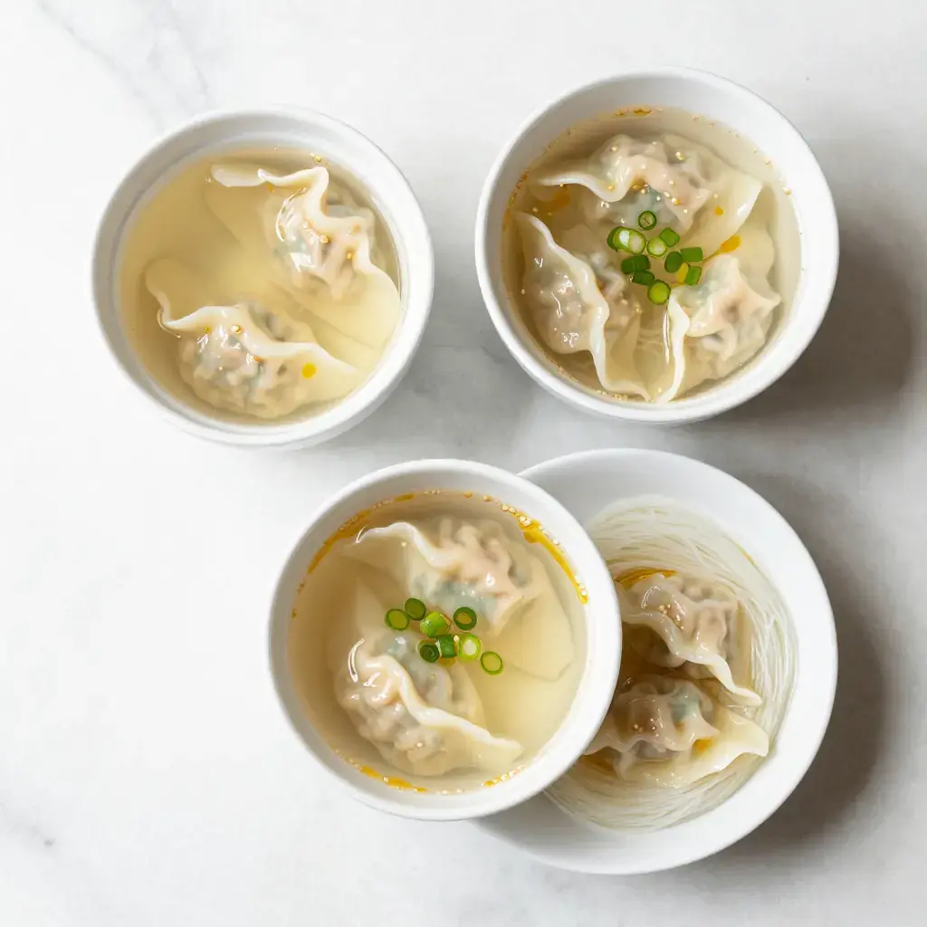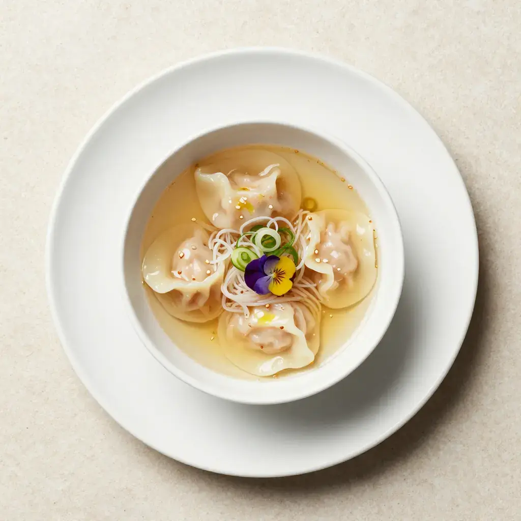 Cook's Notes: The tradition of pounding pork loin into wrappers is labour-intensive but produces an extraordinary texture — it is worth making for a weekend project. Using commercial wonton wrappers is an acceptable shortcut without sacrificing much flavour.