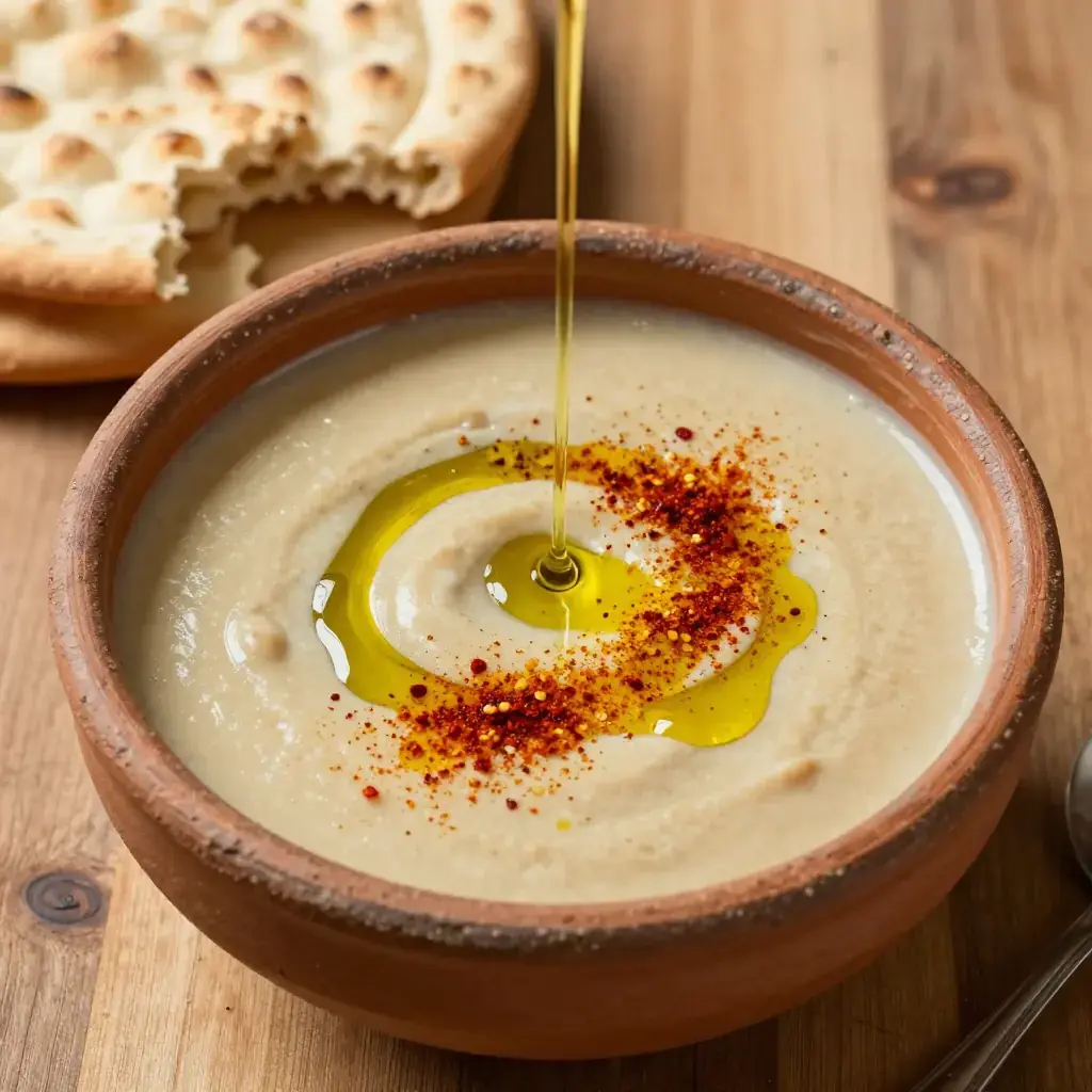 Bissara is one of Morocco's humblest and most nourishing dishes — a thick, silky purée of dried split fava beans (or dried peas) eaten as a warming breakfast soup or a simple lunch. Sold from steaming roadside pots in the medinas of Fès and Marrakech, it is street food for working people: cheap, sustaining and deeply flavoured with garlic, cumin and paprika. A generous drizzle of olive oil and a shake of ground cumin finish every bowl.
